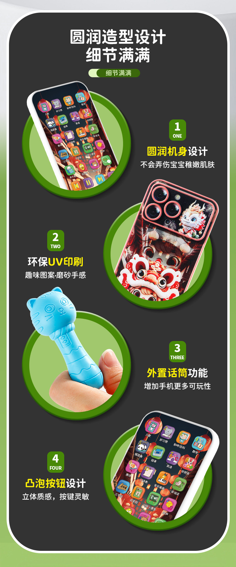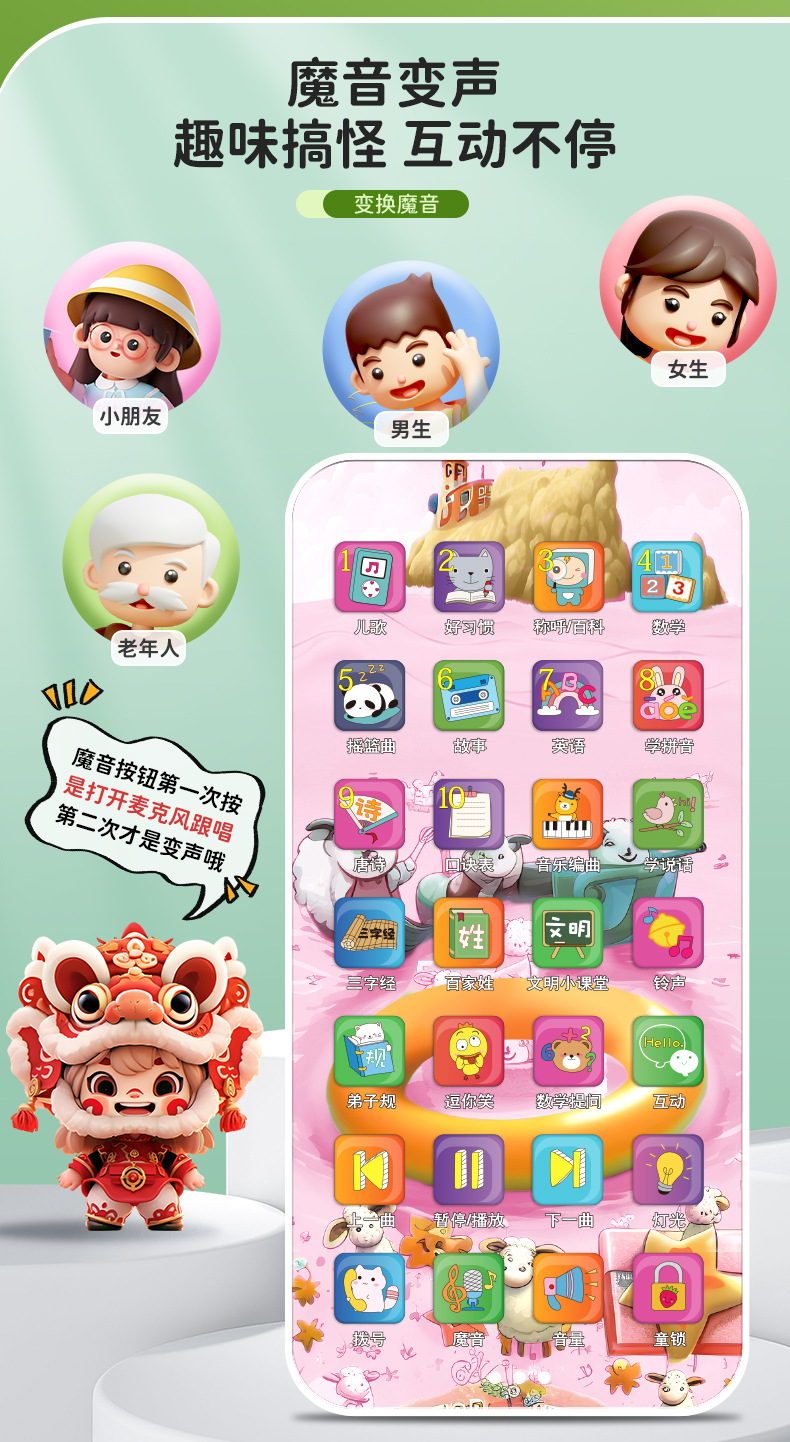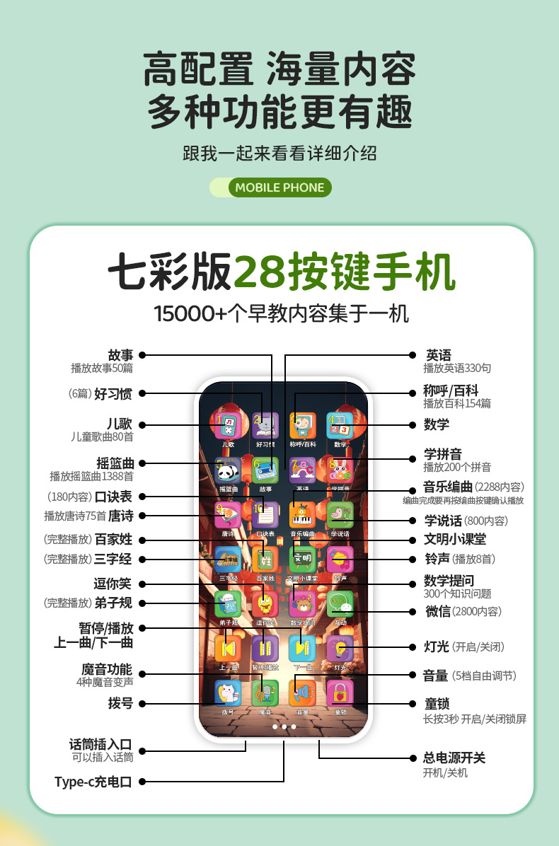 • 28 키 충전식 휴대 전화 [드래곤 년 사자 댄스 테마-컬러 박스]