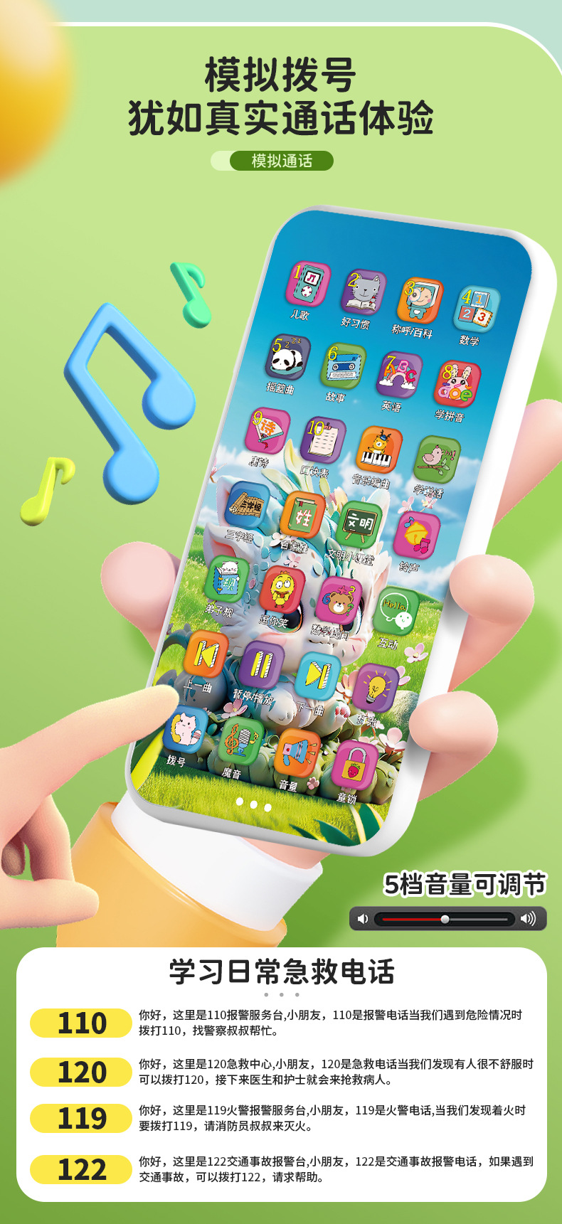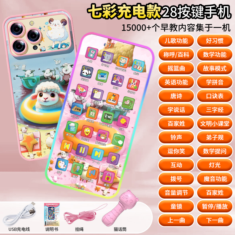 충전식 시뮬레이션 터치 스크린 휴대 전화 장난감 아기 교육 이야기 조기 교육 소년 소녀를위한 3 자 경 음악 전화