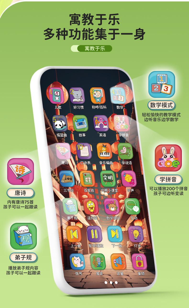충전식 시뮬레이션 터치 스크린 휴대 전화 장난감 아기 교육 이야기 조기 교육 소년 소녀를위한 3 자 경 음악 전화스토어 가기