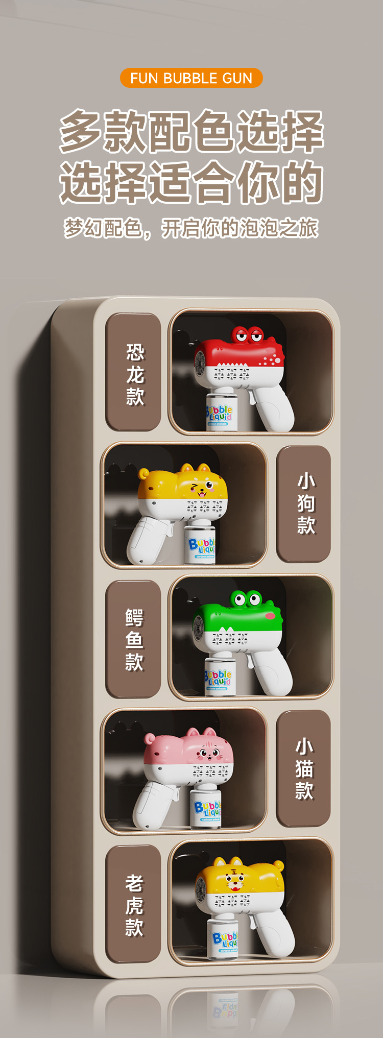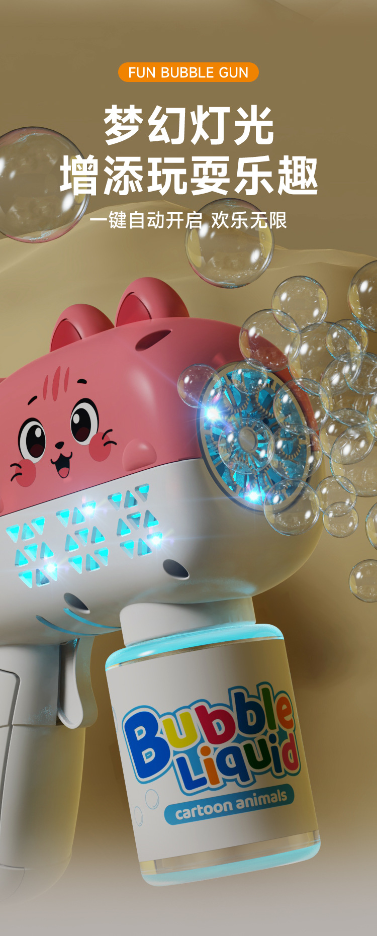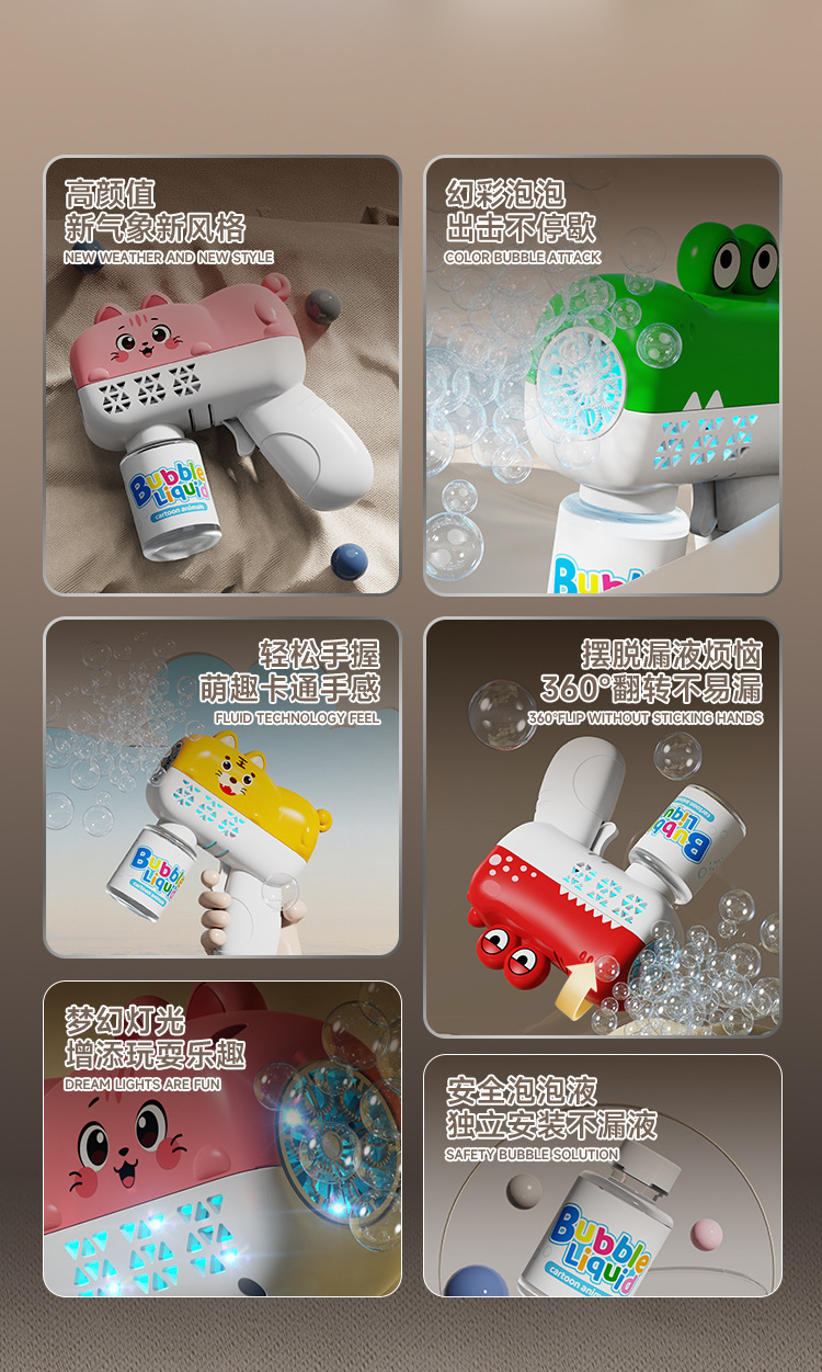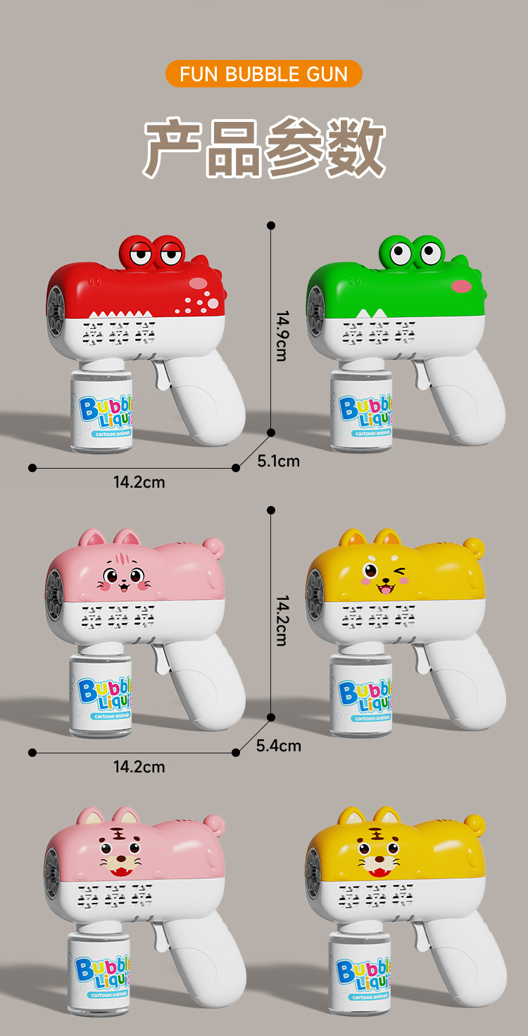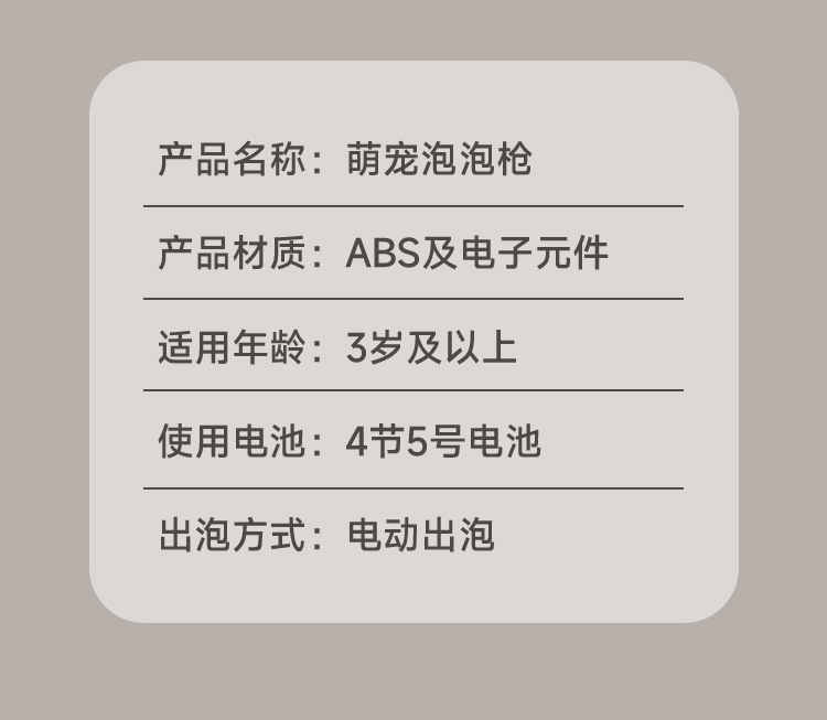 温馨提示:电池版的泡泡机尽量购买本店所售卖的泡泡机专用5号电池,泡泡机不支持使用南孚、双鹿等强力电池,会烧坏泡泡机,购买零售价1排4粒3到4元那些普通电池。不玩时将泡泡瓶取下来,排出里面的泡泡液,泡泡机会耐玩很多。自动款泡泡机使用的5号电池为4节,烟花泡泡机使用的5号电池为6节,沾液款使用的5号电池为2到4节(具体咨询客服)。
