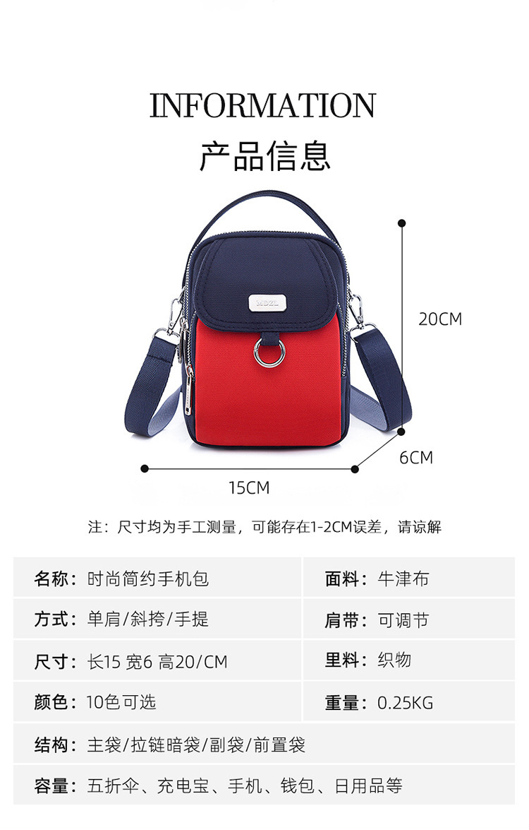 새로운 가방 여성 2025 새로운 여성 메신저 가방 캐주얼 옥스포드 천 핸드백 멀티 구획 천 가방 휴대 전화 가방