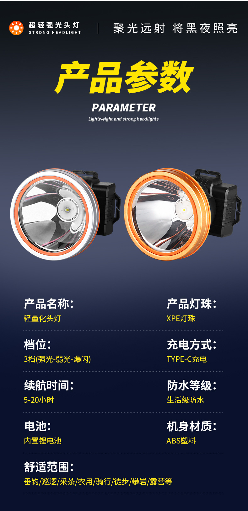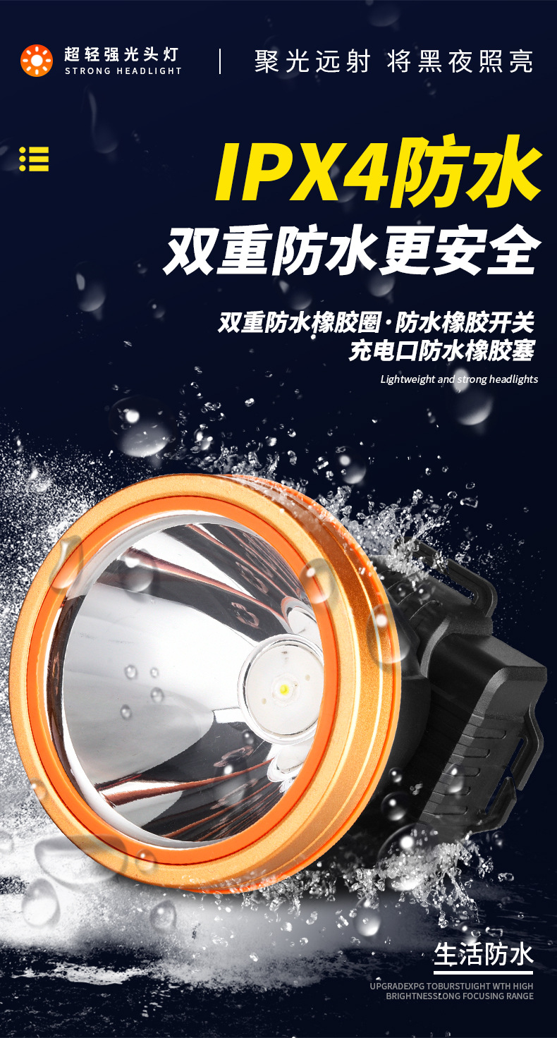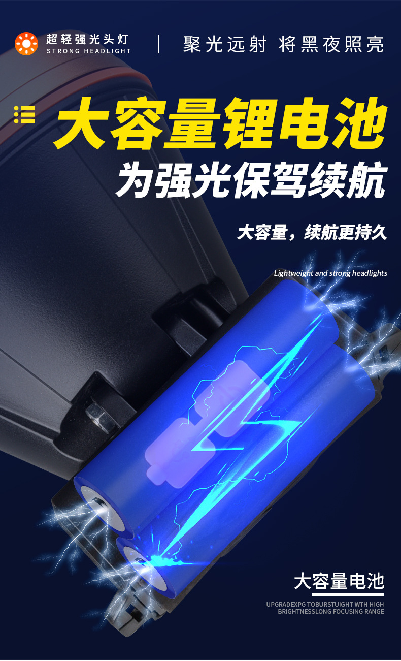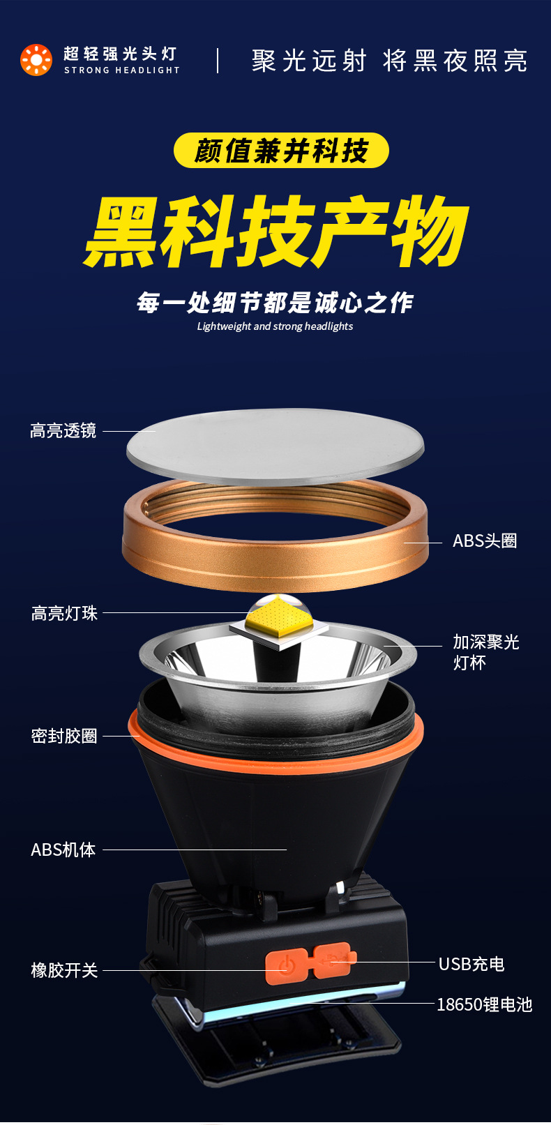 새로운 강한 빛 LED 헤드 라이트 야외 야간 낚시 램프 충전식 리튬 헤드 장착형 손전등 플라스틱 헤드 라이트 도매