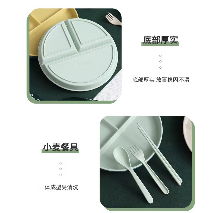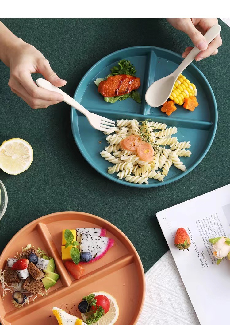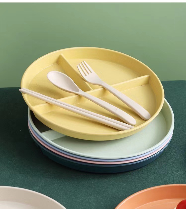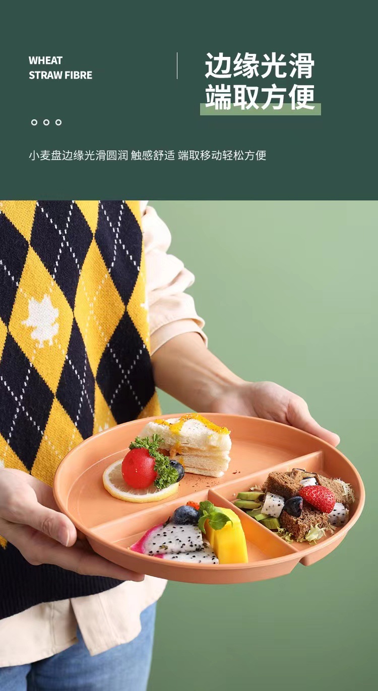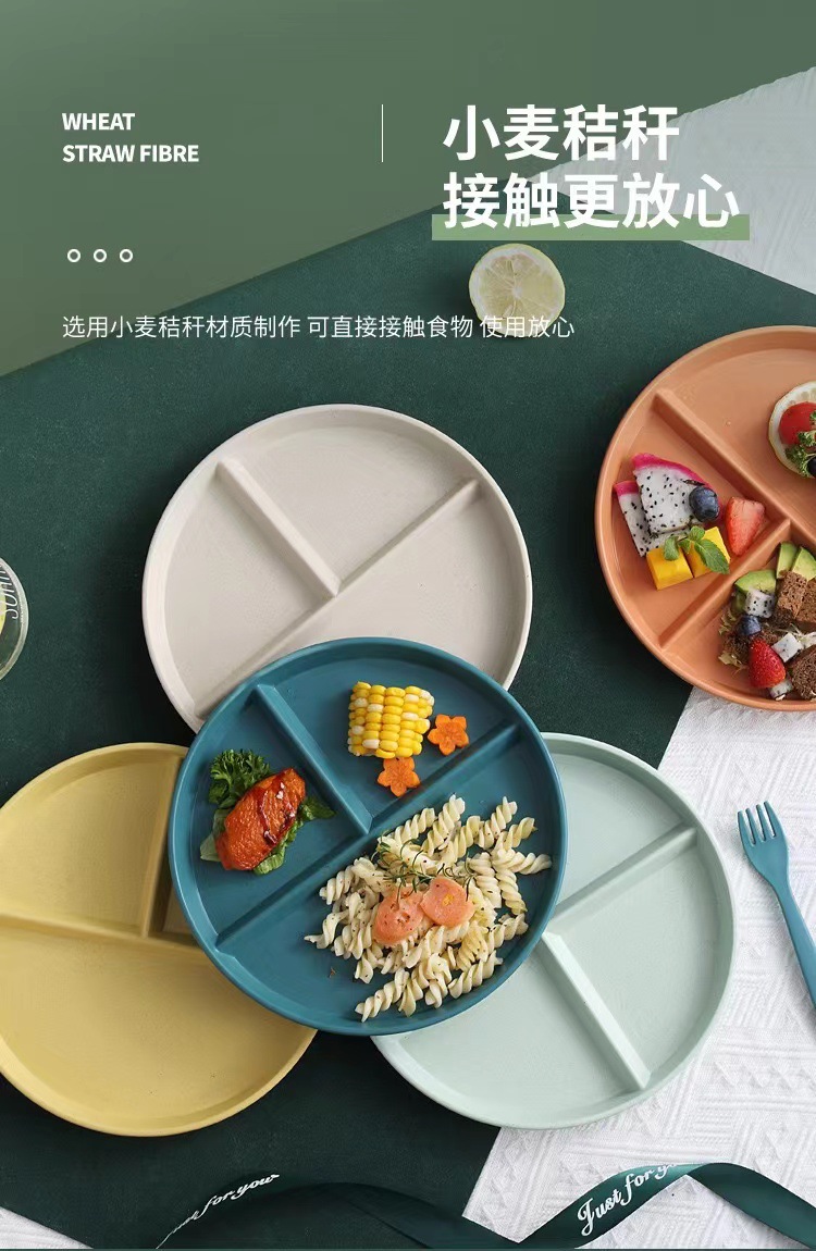 그리드 플레이트 밀 밀짚 지방 감소 플레이트 정량적 플레이트 3 그리드 가정용 창작 식기 과일 플레이트 라운드 플레이트스토어 가기