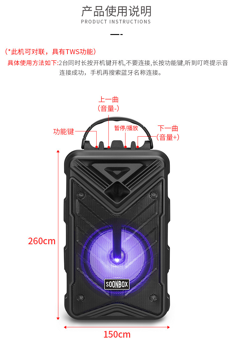 대외 무역 4inch 광장 댄스 K-노래 블루투스 스피커 야외 휴대용 마이크 카드 삽입형 오디오 S75.0 블루투스 5.0 탑재스토어 가기