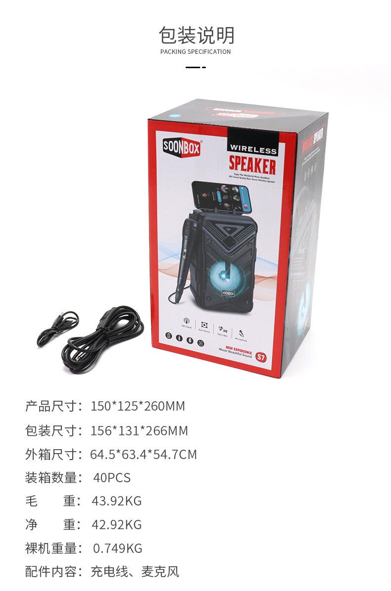 대외 무역 4inch 광장 댄스 K-노래 블루투스 스피커 야외 휴대용 마이크 카드 삽입형 오디오 S75.0 블루투스 5.0 탑재