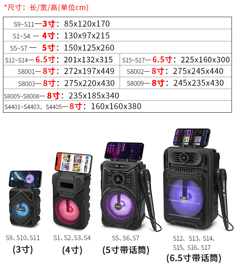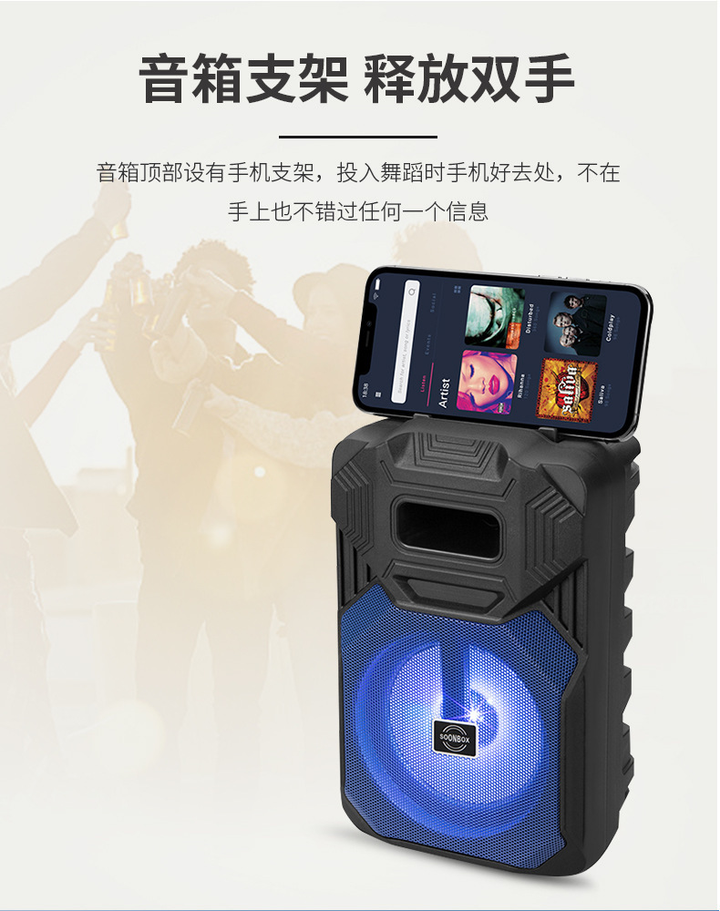 휴대폰 거치대가 있는 블루투스 스피커, 야외용 대용량 소형 스피커, 가정용 KTV, 카드 삽입형 S1, 고음질 블루투스 5.0스토어 가기