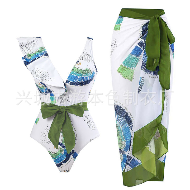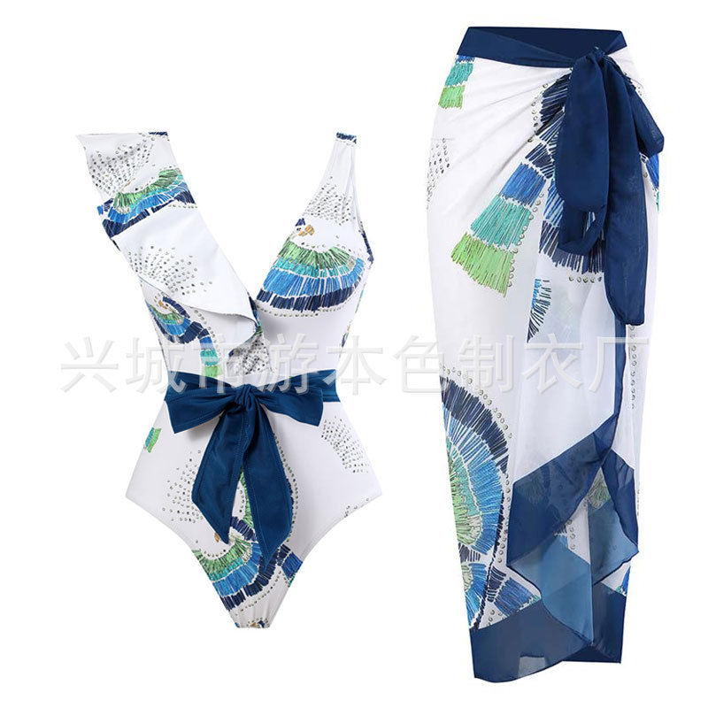 국경을 넘나 드는 새로운 유럽과 미국 여성 패션 원피스 수영복 스커트 프린트 여성용 하이 센스 AliExpress 보수적 수영복