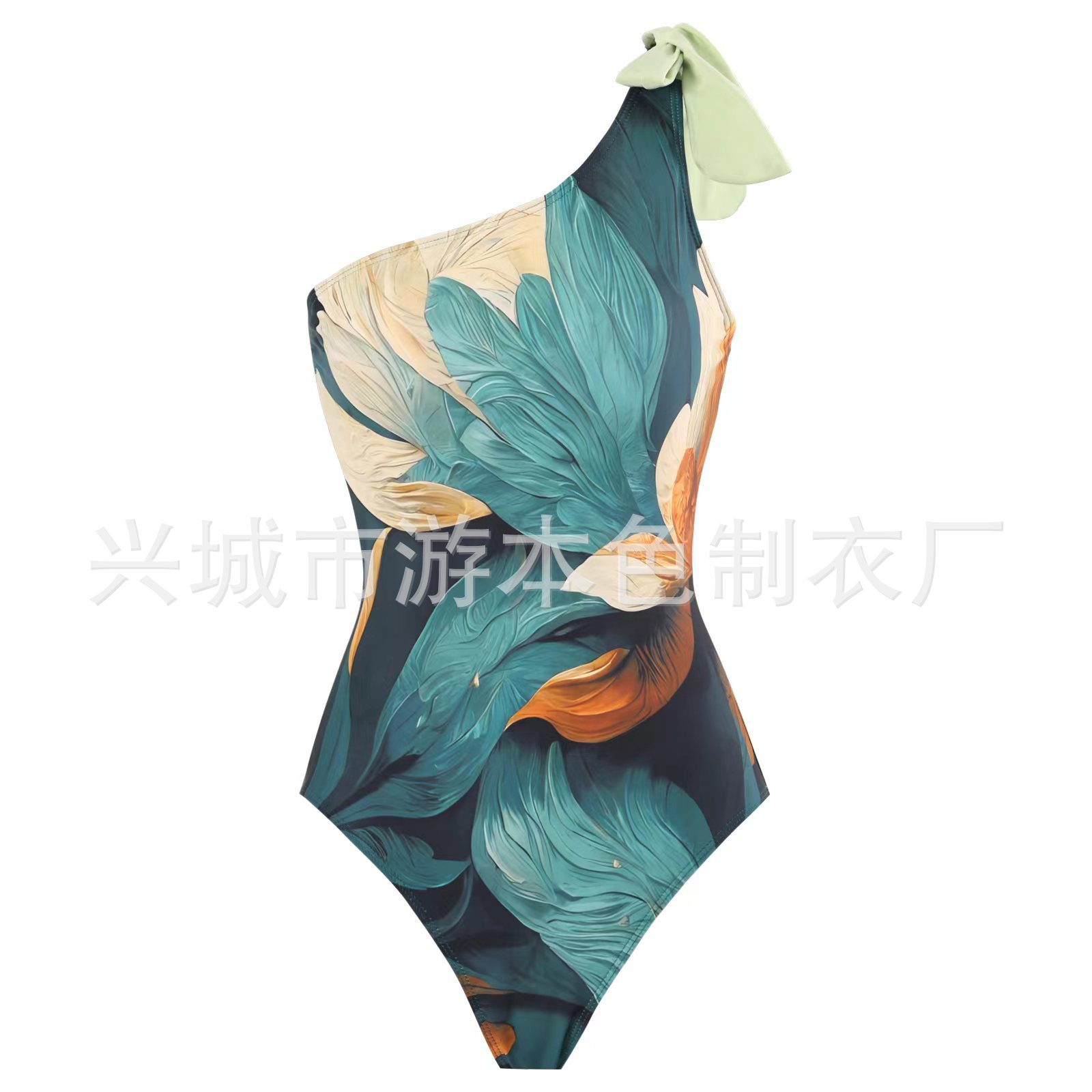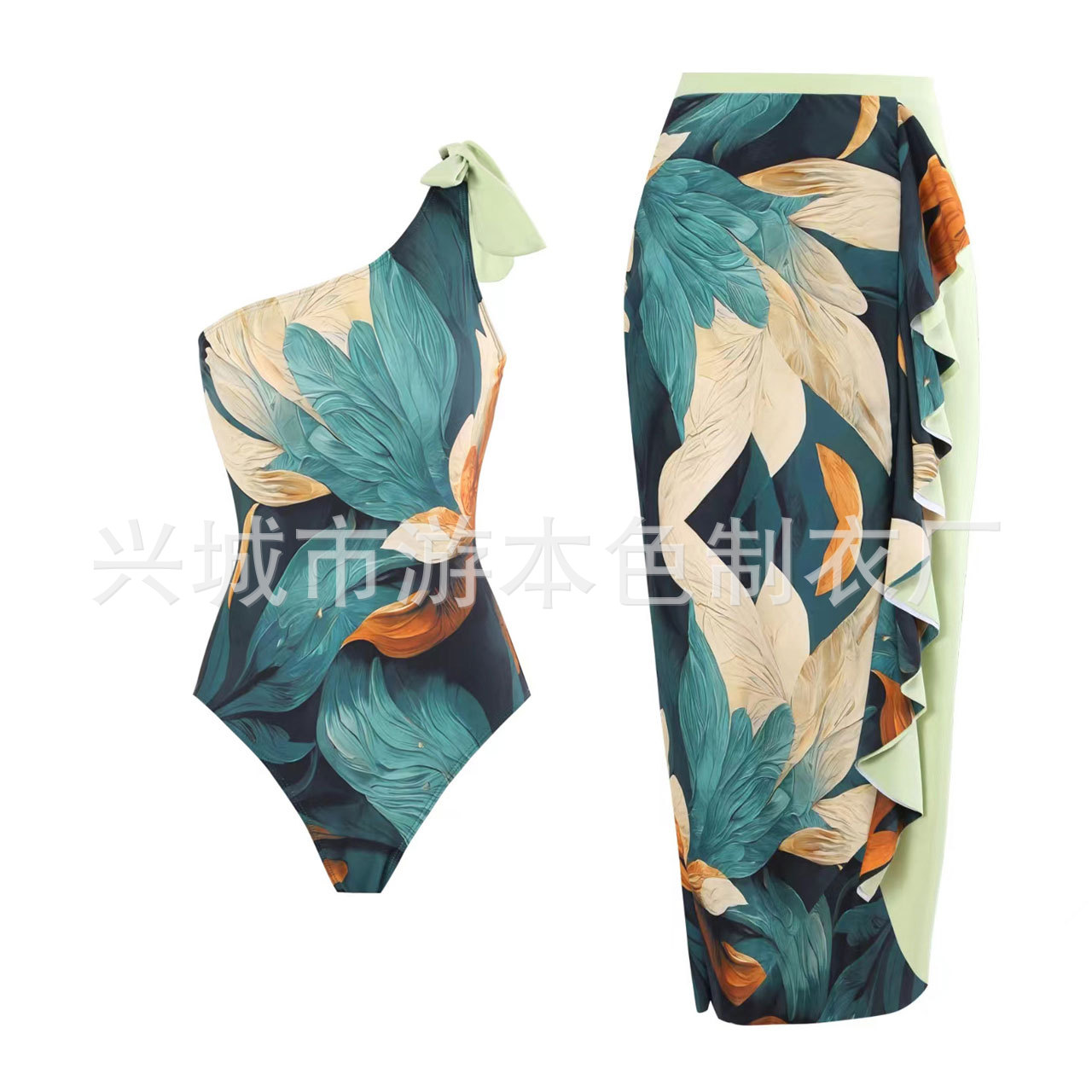 새로운 대외 무역 인쇄 깃털 고급 섹시한 배 커버 슬리밍 비키니 투피스 아마존 수영복 도매스토어 가기
