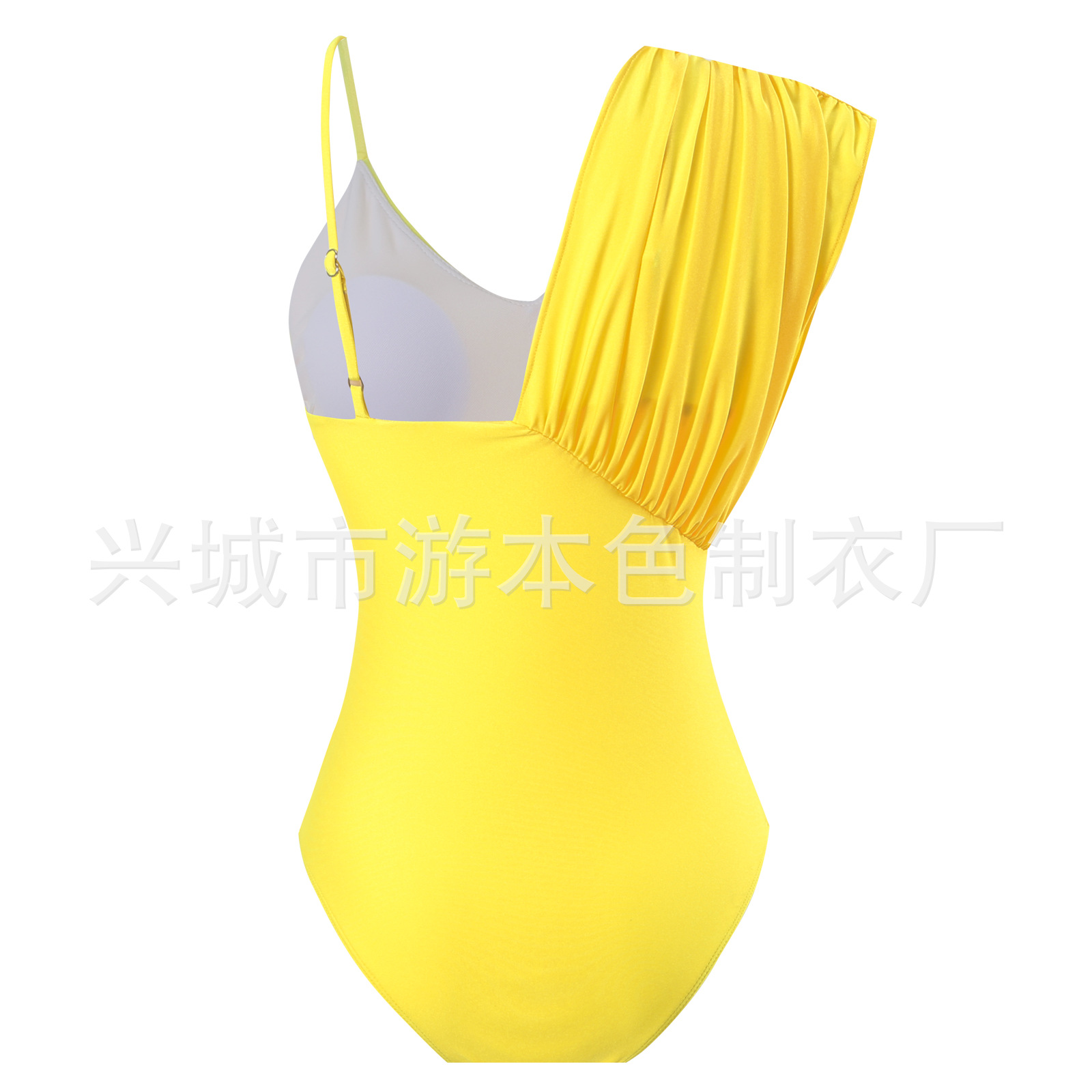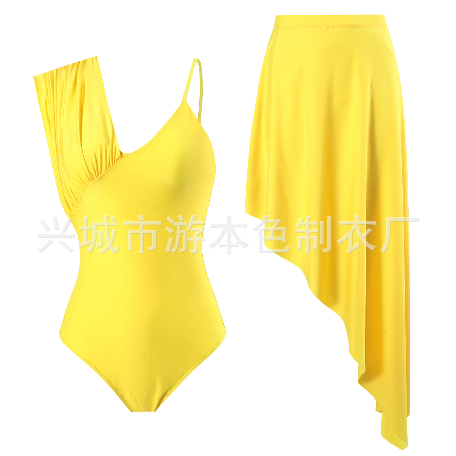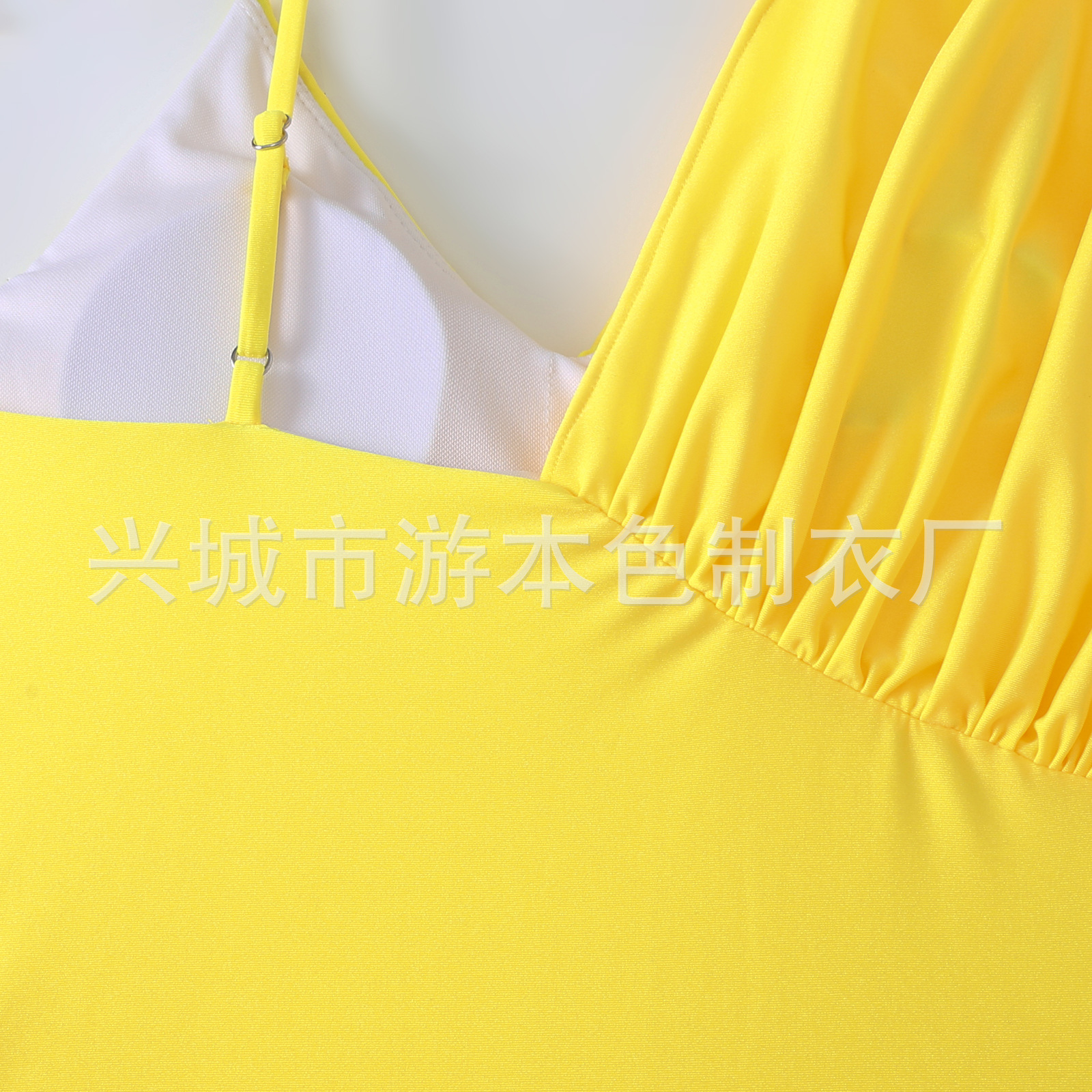 부드러운 거위 노란색 유럽과 미국의 원피스 투피스 수영복 여성 하이 엔드 패션 간단한 주름 가장자리 국경 대외 무역 커버 고기스토어 가기