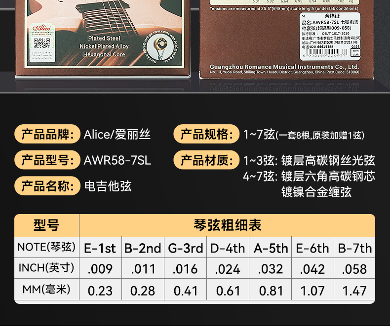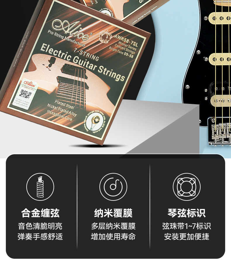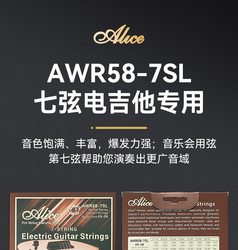 앨리스 앨리스 AWR58-7SL 일렉트릭 기타 현악기 8 개 풀 세트 1 개 일렉트릭 기타 현 7 개 전용