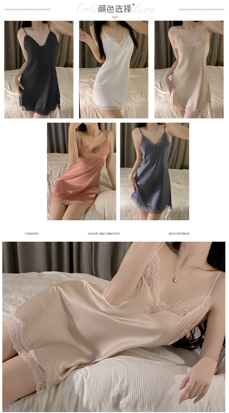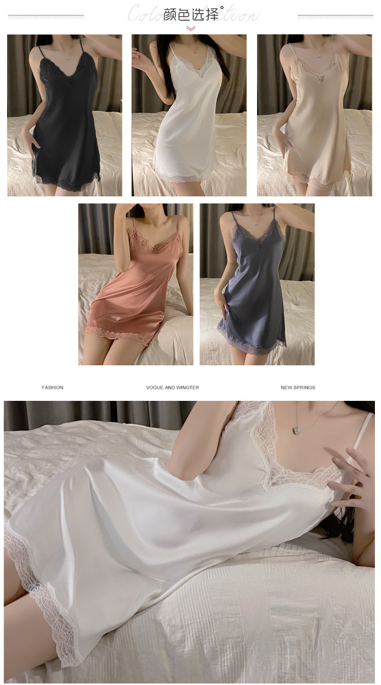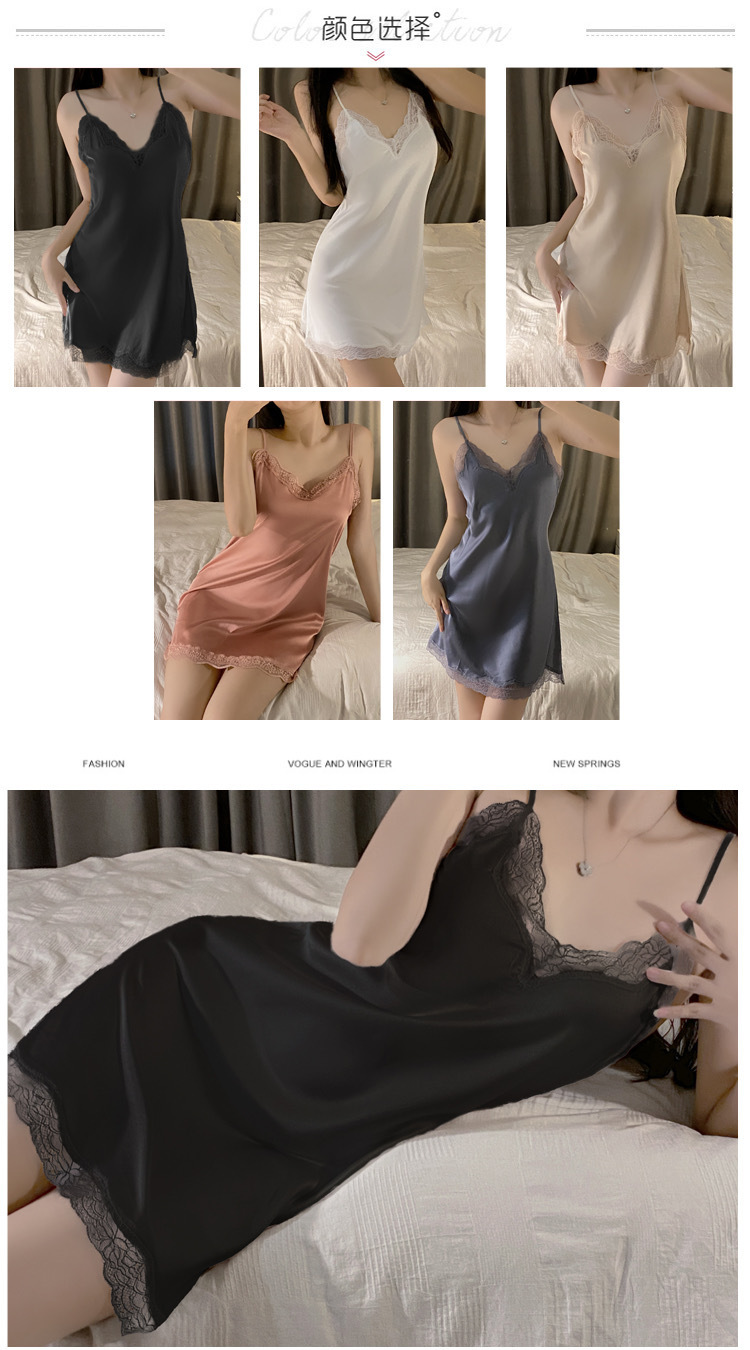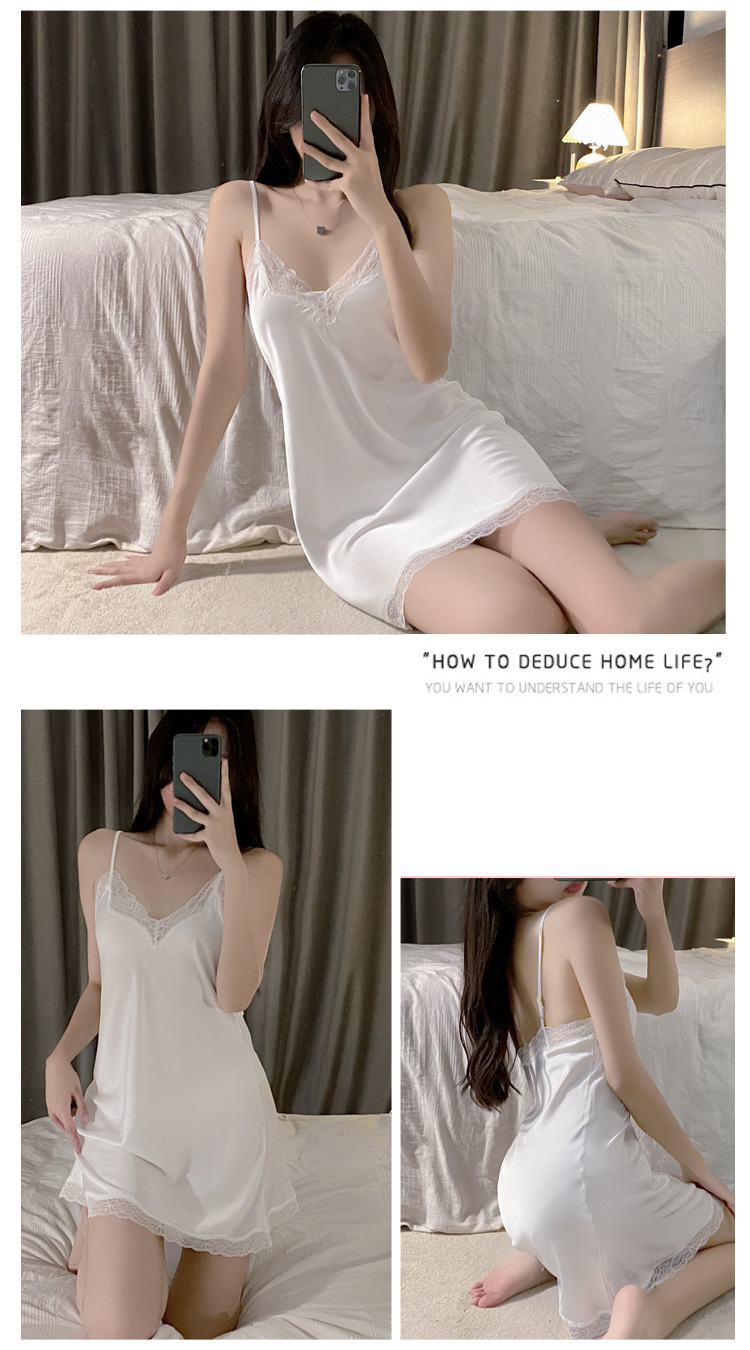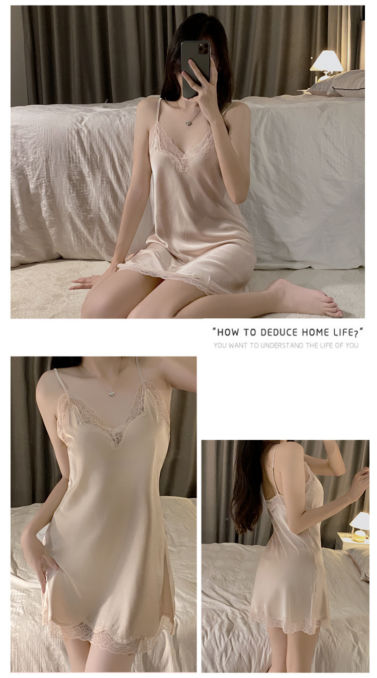 여자 여름 아이스 실크 하이 엔드 얇은 슬링 파자마 섹시한 레이스 여름 2023 새 홈 의류스토어 가기