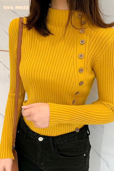 새로운 하프 터틀넥 풀오버 긴 소매 슬림 스웨터 여성의 간단한 스타일 버튼 올 매치 스웨터 바닥 셔츠 최고 여성스토어 가기