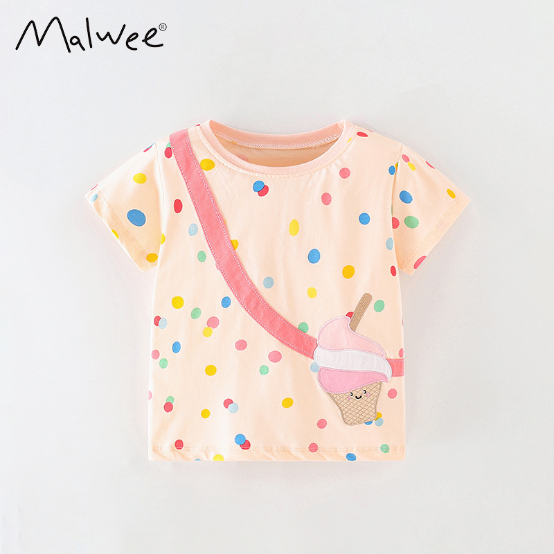Malwee girls '여름 새 티셔츠 유럽과 미국 어린이 둥근 목 짧은 소매 서양식 아동용 탑 인쇄스토어 가기
