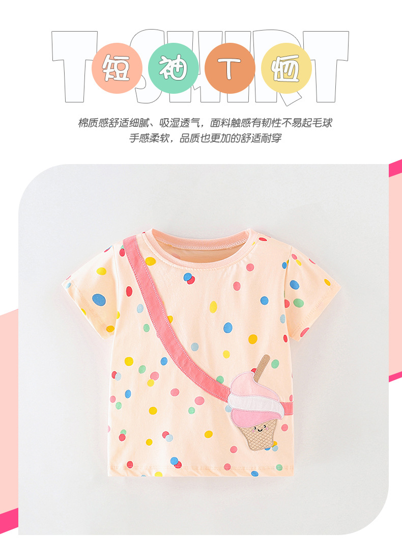 Malwee girls '여름 새 티셔츠 유럽과 미국 어린이 둥근 목 짧은 소매 서양식 아동용 탑 인쇄