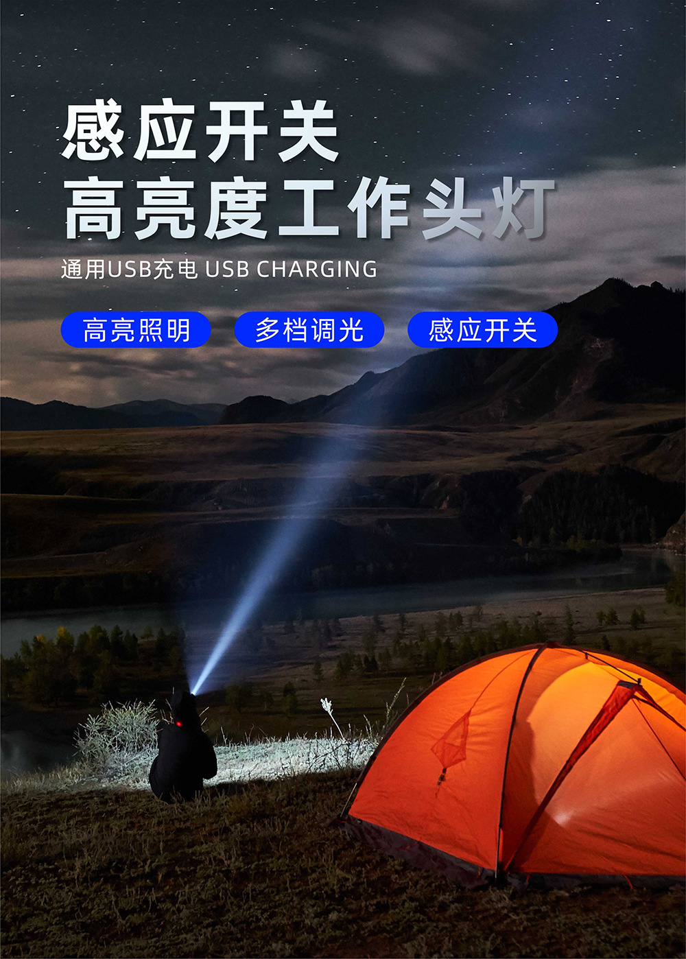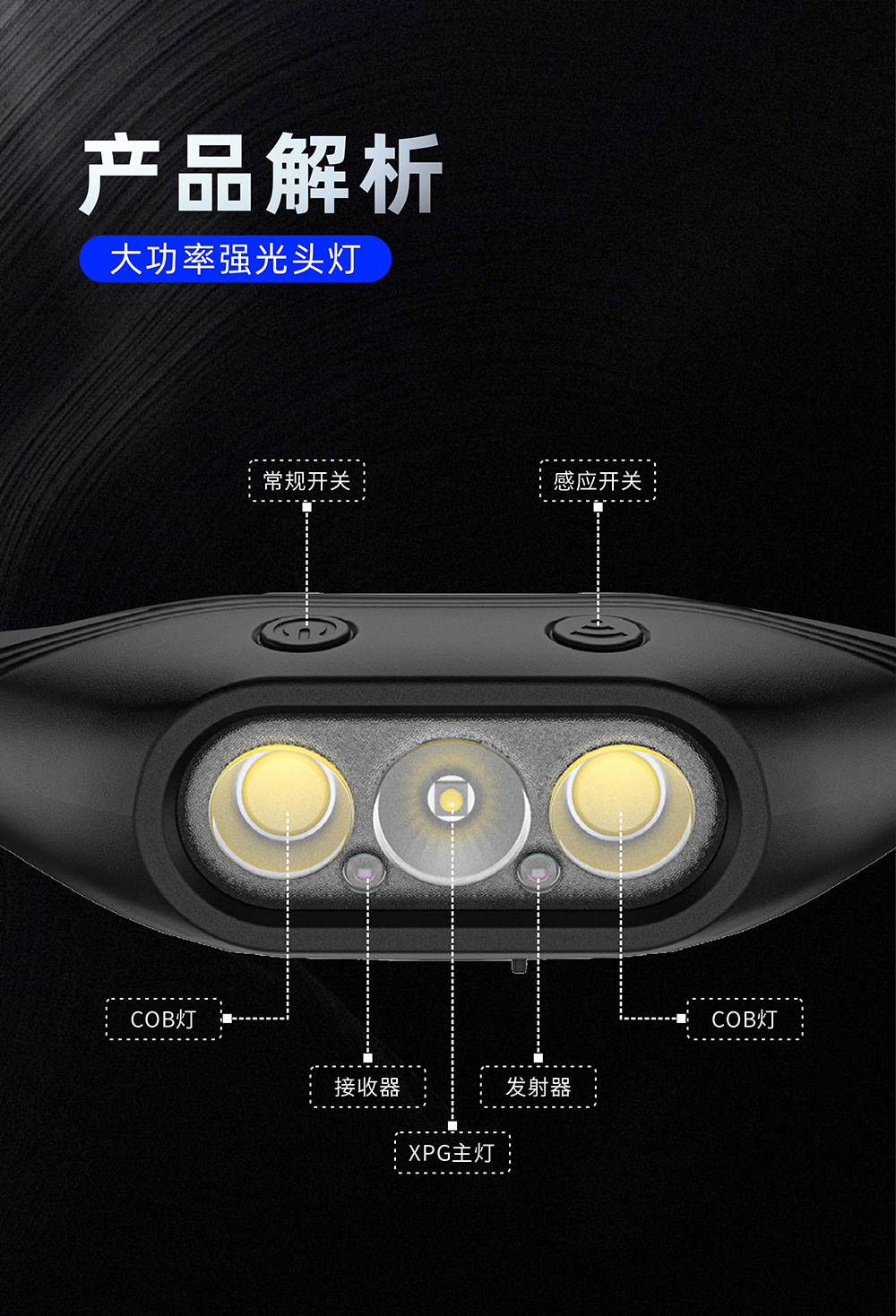 크로스보더 센서 헤드램프, 긴 배터리 수명, 강한 빛, 초고휘도, 야외용 실리콘 헤드램프, 충전식 일체형 헤드램프, 광부용 헤드램프스토어 가기