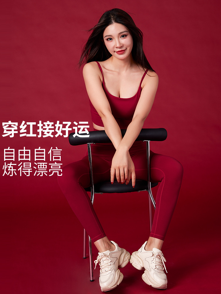 크리스마스 필라테스 행운의 붉은 아름다움 다시 스포츠 속옷 요가 피트니스 실행 얇은 어깨 끈 필라테스 훈련 브래지어