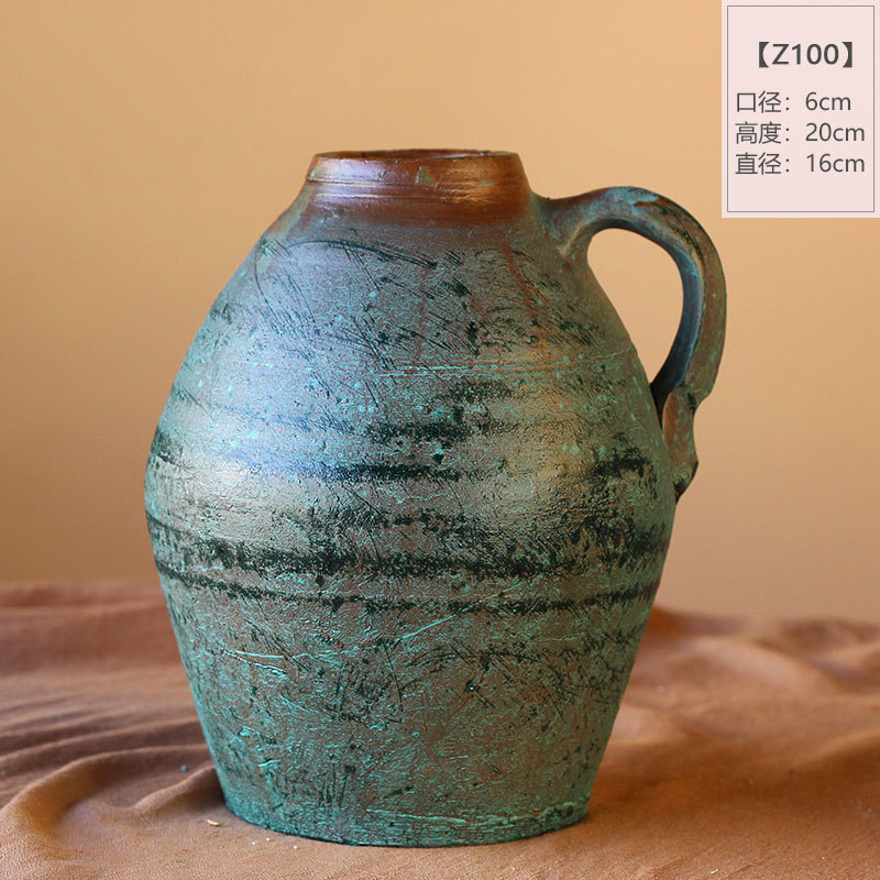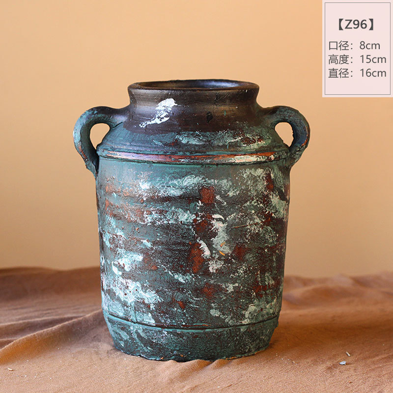 새로운 중국 스타일의 도자기 냄비 꽃병 빈티지 석기 삽입 말린 꽃 골동품 침대 및 아침 식사 선 수경 세라믹 홈 장식 장식품스토어 가기