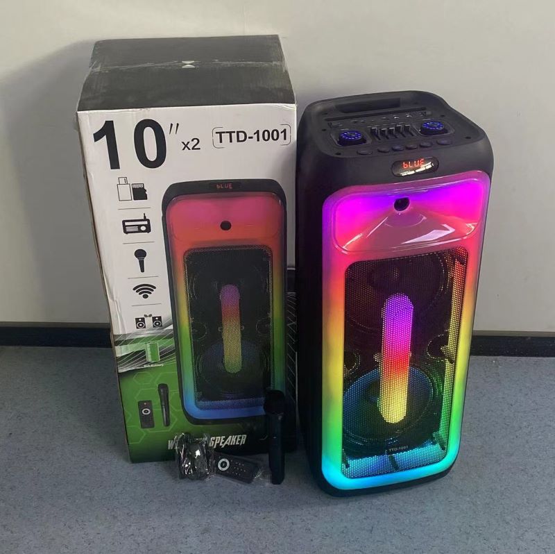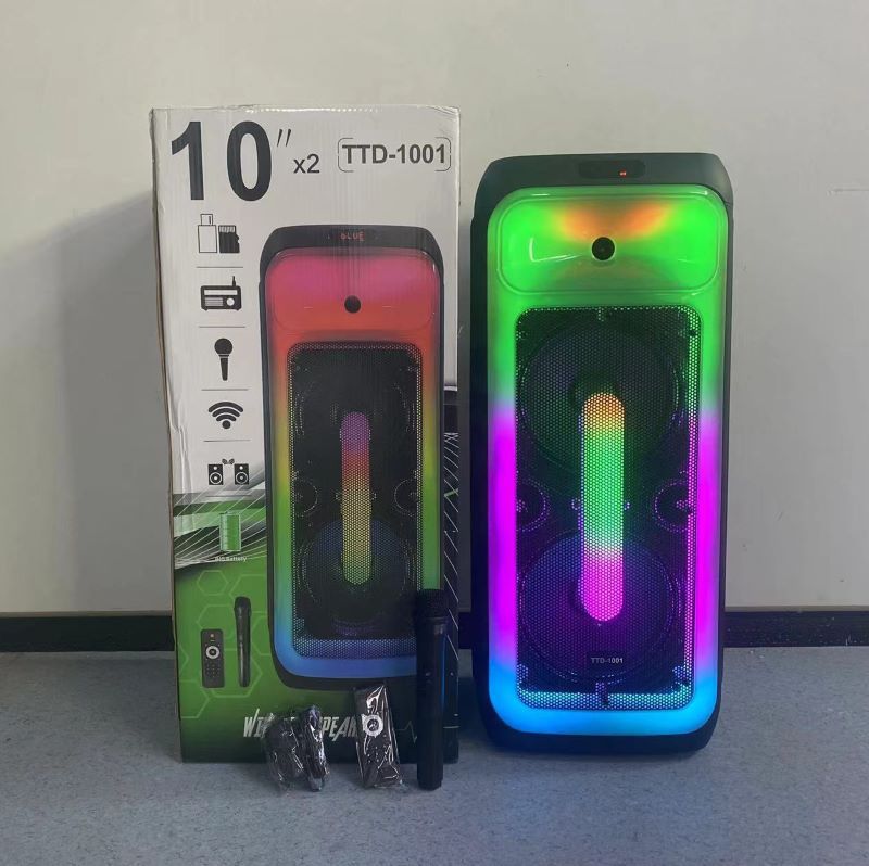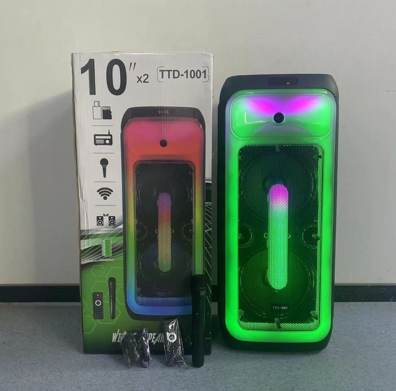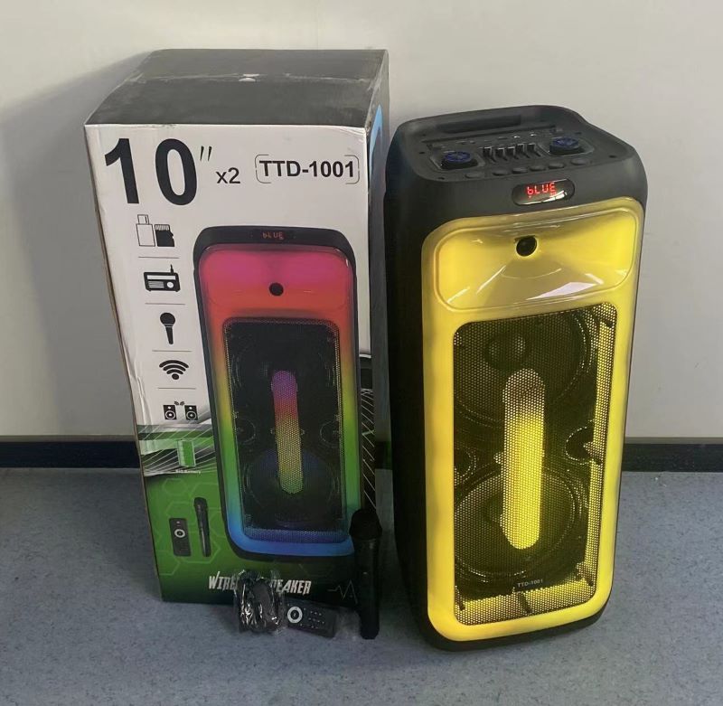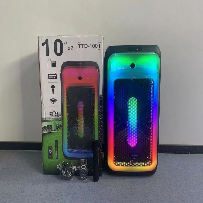 새로운 TTD-1001 더블 10 인치 오디오 led 불꽃 빛 야외 무선 블루투스 스피커 가라오케 홈 서브 우퍼스토어 가기