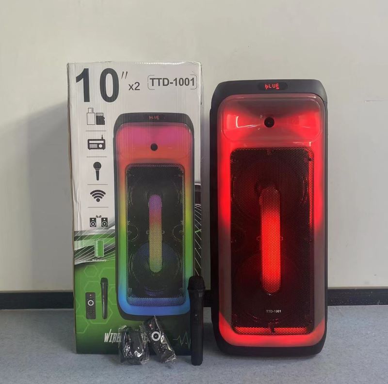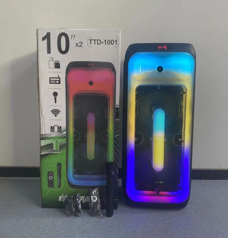 새로운 TTD-1001 더블 10 인치 오디오 led 불꽃 빛 야외 무선 블루투스 스피커 가라오케 홈 서브 우퍼