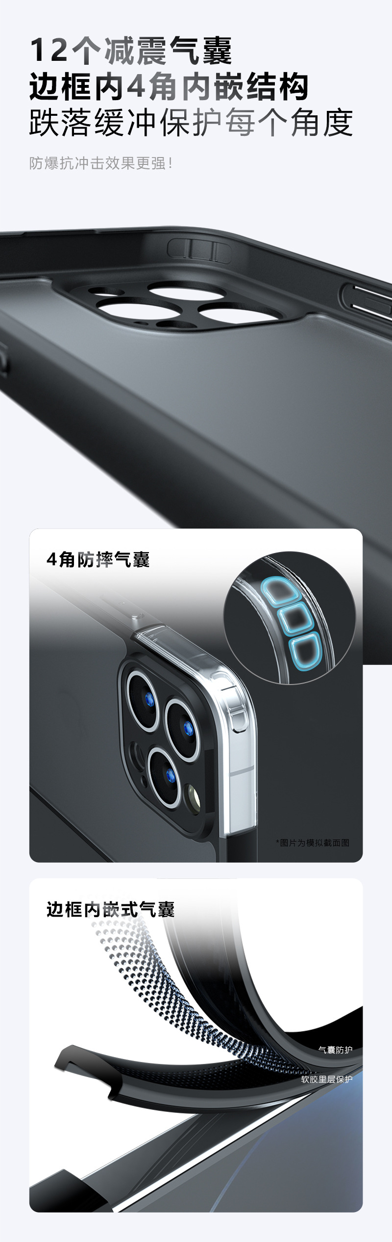 适用iPhoneSE4手机壳肤感磨砂苹果15气囊防摔壳奇甲苹果15Pro商务