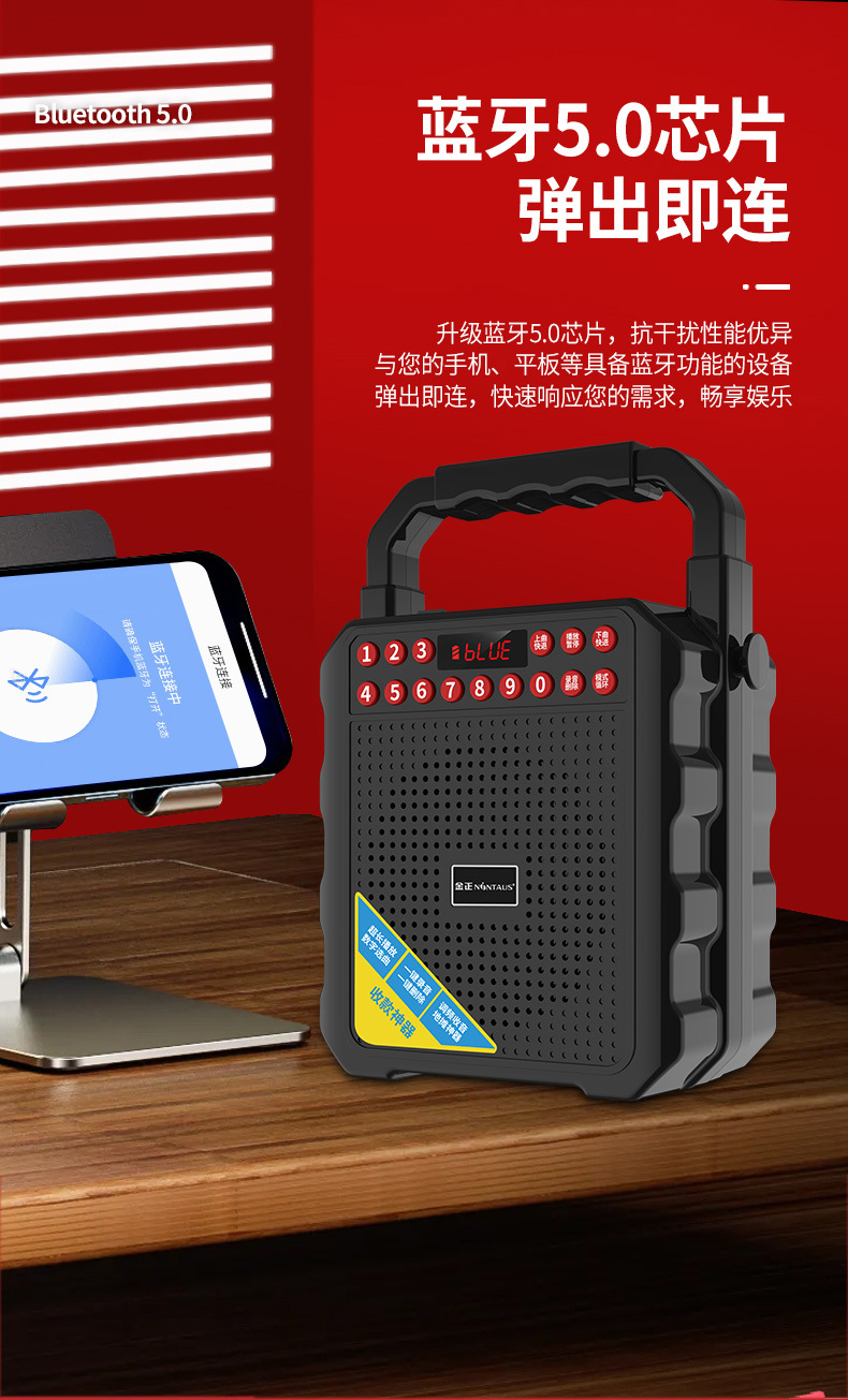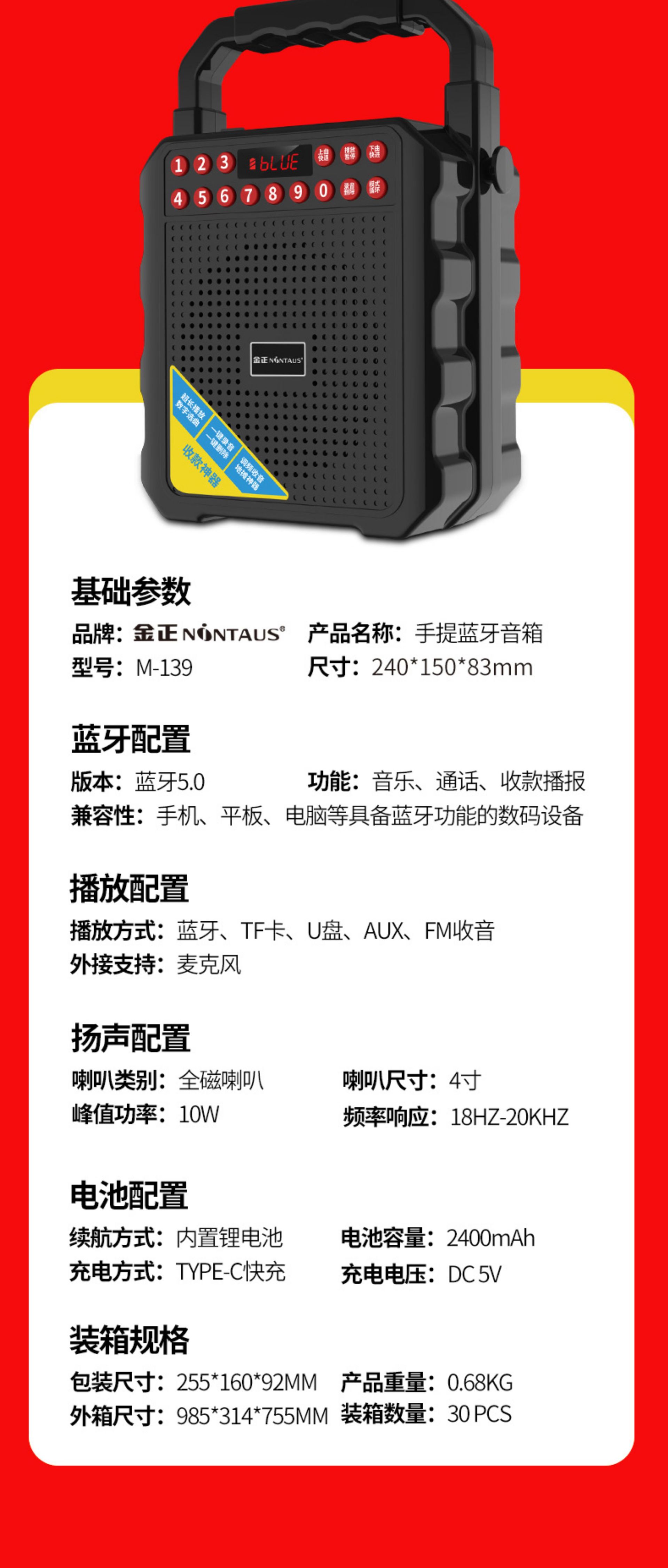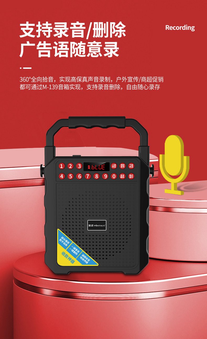 진정 M-139 스퀘어 댄스 오디오 블루투스 야외 스피커 대용량 노래방 휴대용 휴대용 소형 모바일