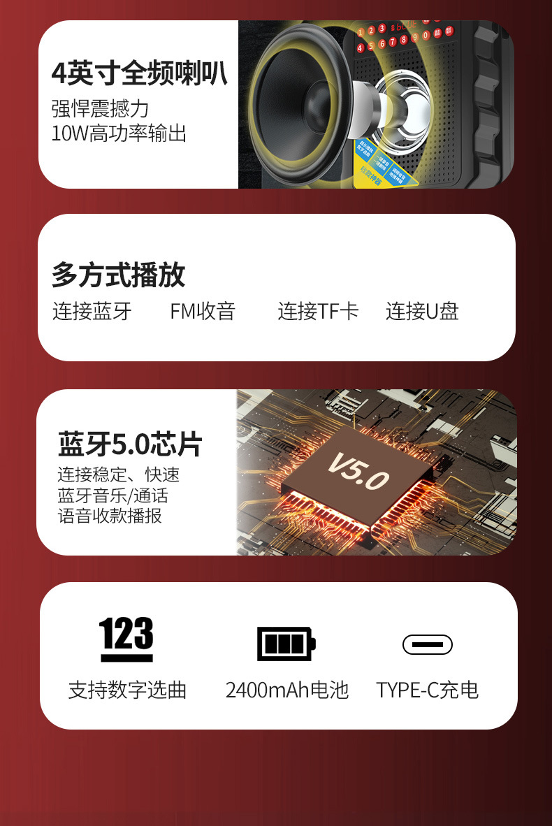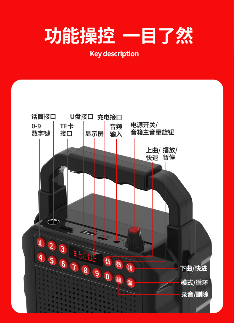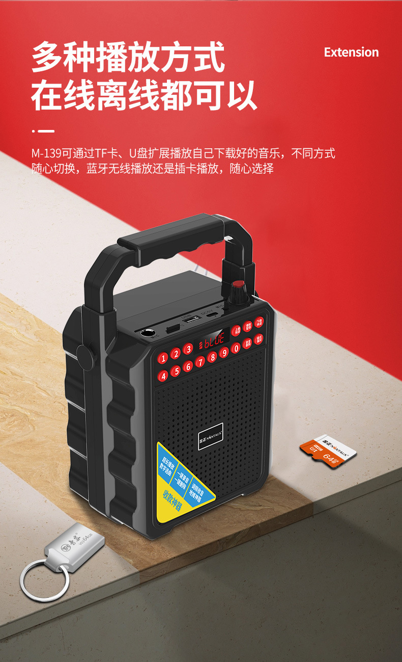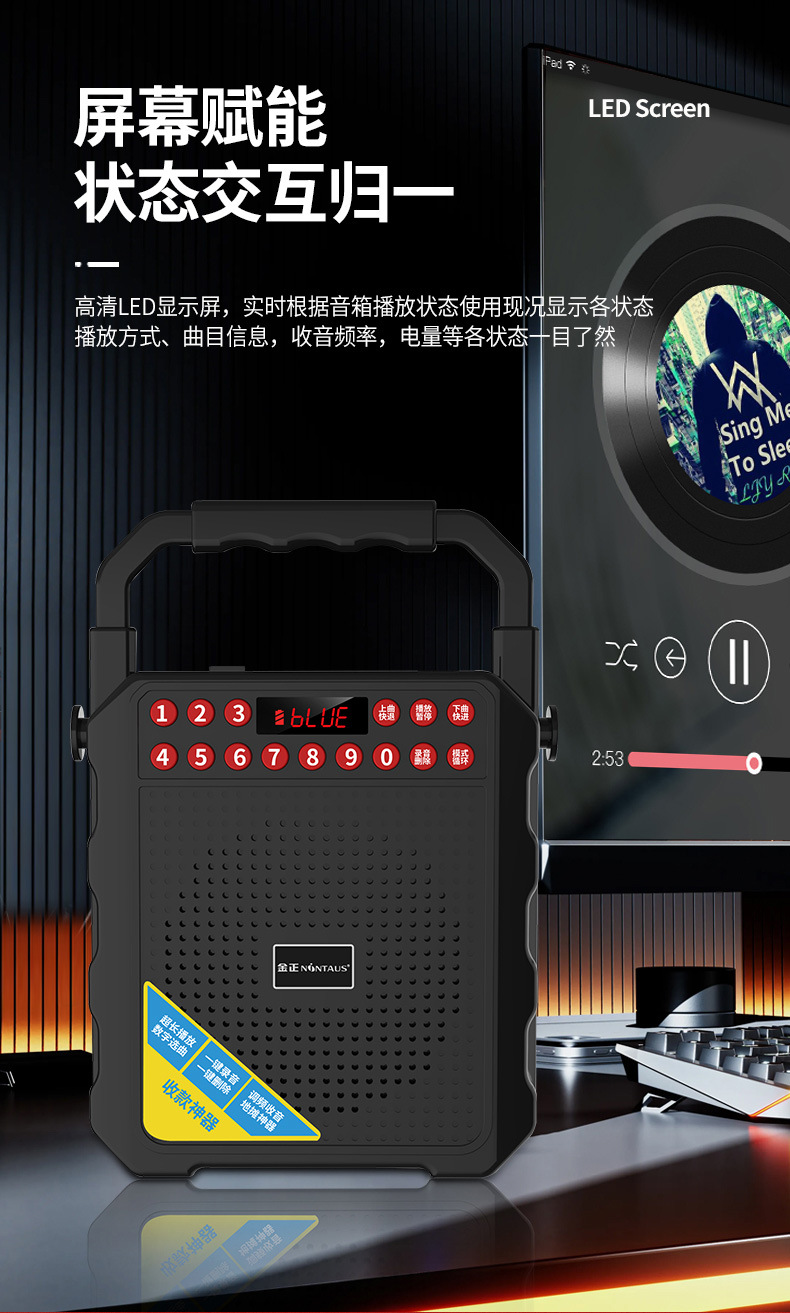 진정 M-139 스퀘어 댄스 오디오 블루투스 야외 스피커 대용량 노래방 휴대용 휴대용 소형 모바일