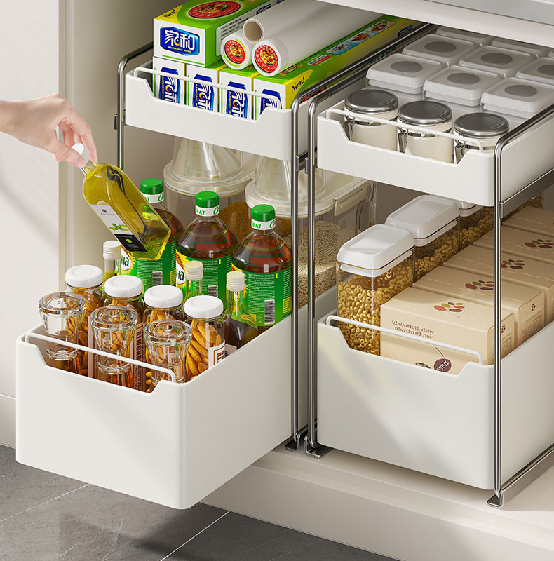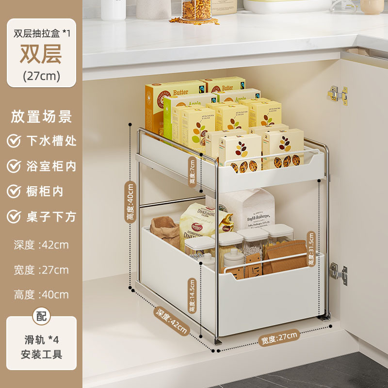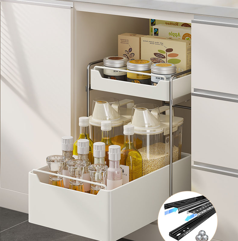 • [업그레이드된 그리드 모델] 소형 + 소형 더블 레이어 풀아웃 바스켓