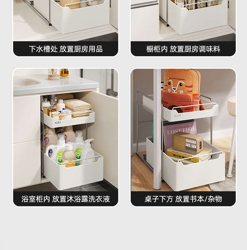 스테인레스 스틸 주방 보관 랙 낮은 싱크 조미료 밥솥 계층화 된 서랍 캐비닛 바구니 보관 마무리 스토리지 랙