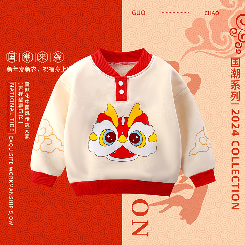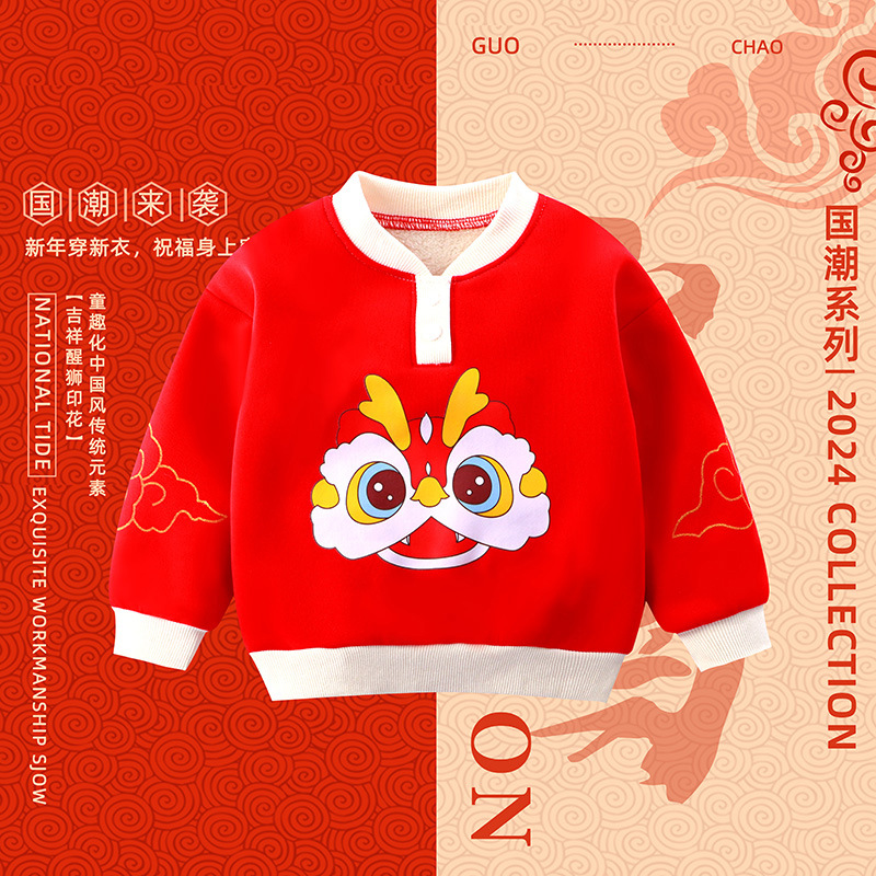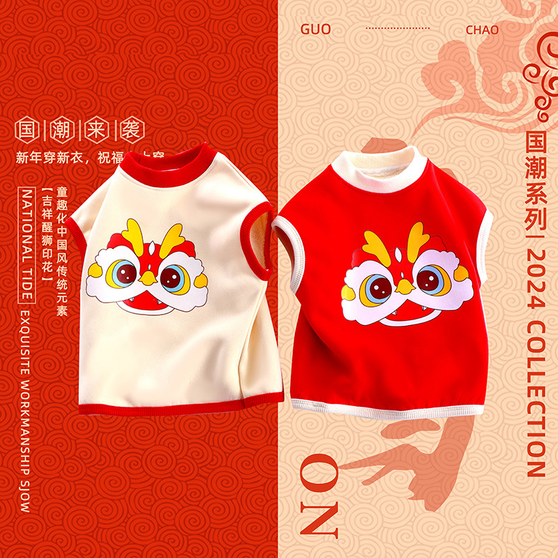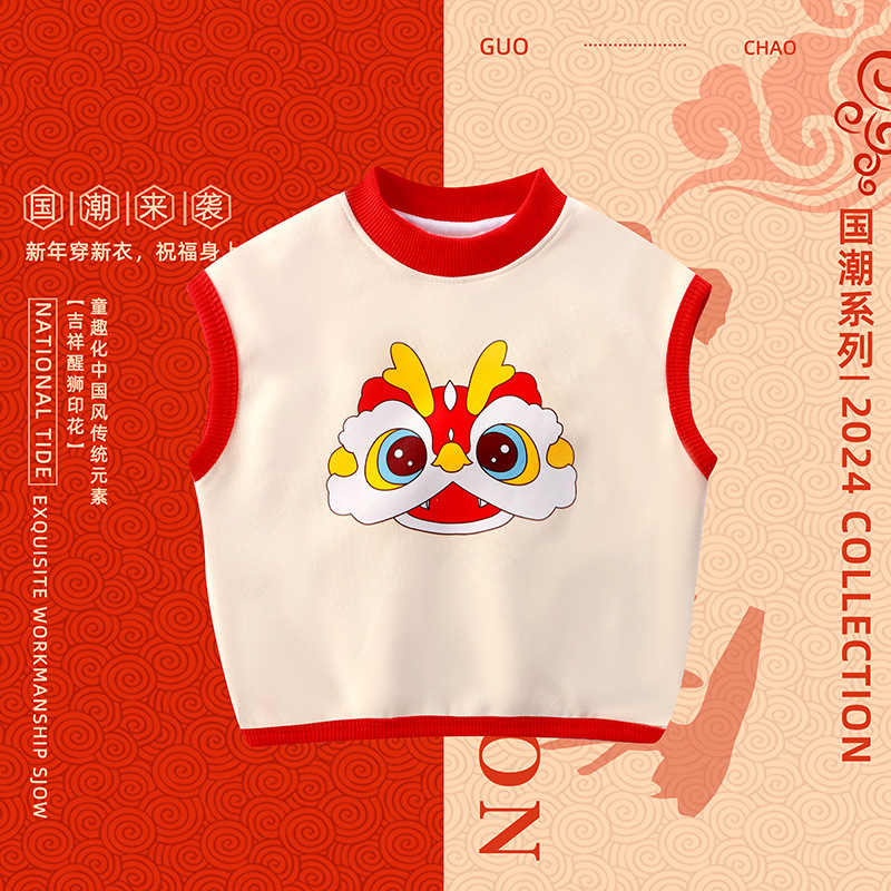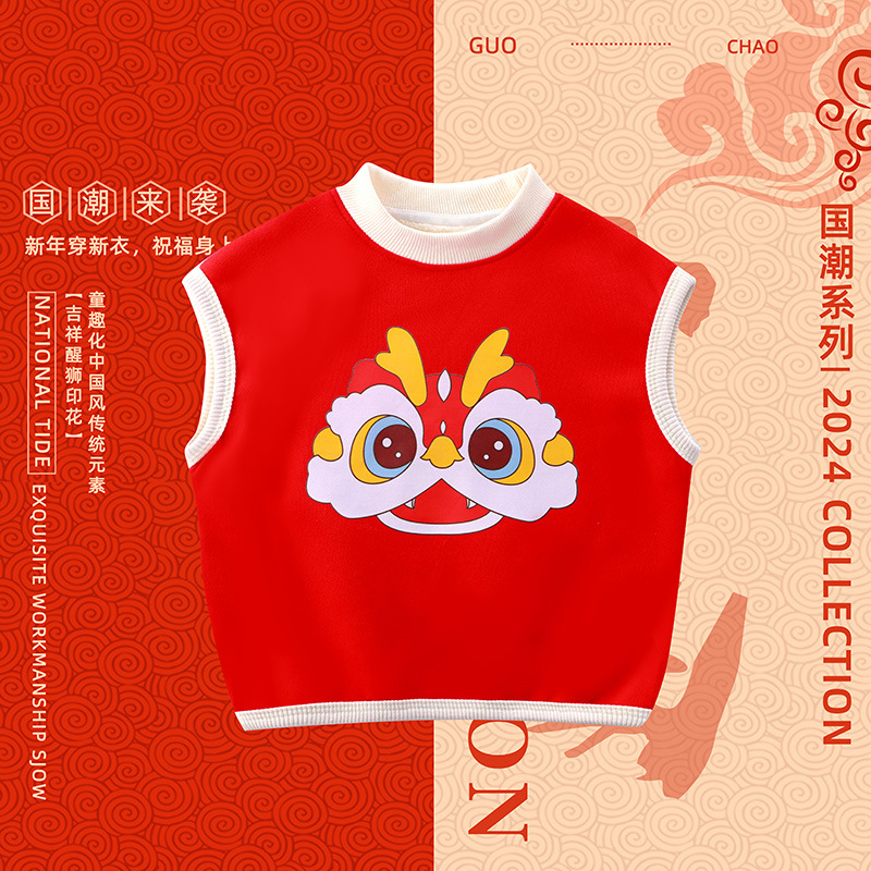드래곤 뉴 보이즈 기모 조끼의 해 기모 두꺼운 여자 중국 스타일 신년 옷 아동복 따뜻한 탑 트렌디스토어 가기