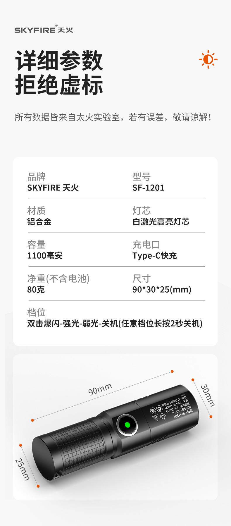 • SF-SD-1201 블랙 작은 손전등 (18350) 럭셔리 구성