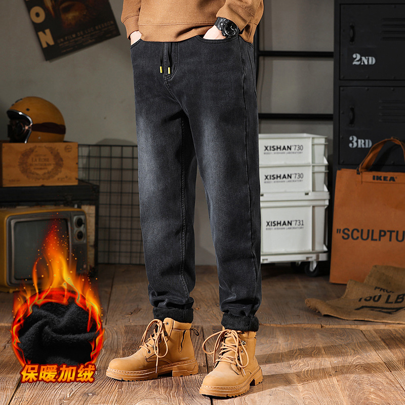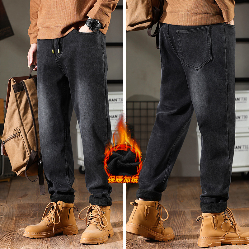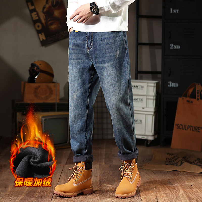 작은 뚱뚱한 암소 가을 스트레치 청바지 남자의 느슨한 양털 플러스 뚱뚱한 플러스 뚱뚱한 남자 스트레이트 바지 가을과 겨울스토어 가기
