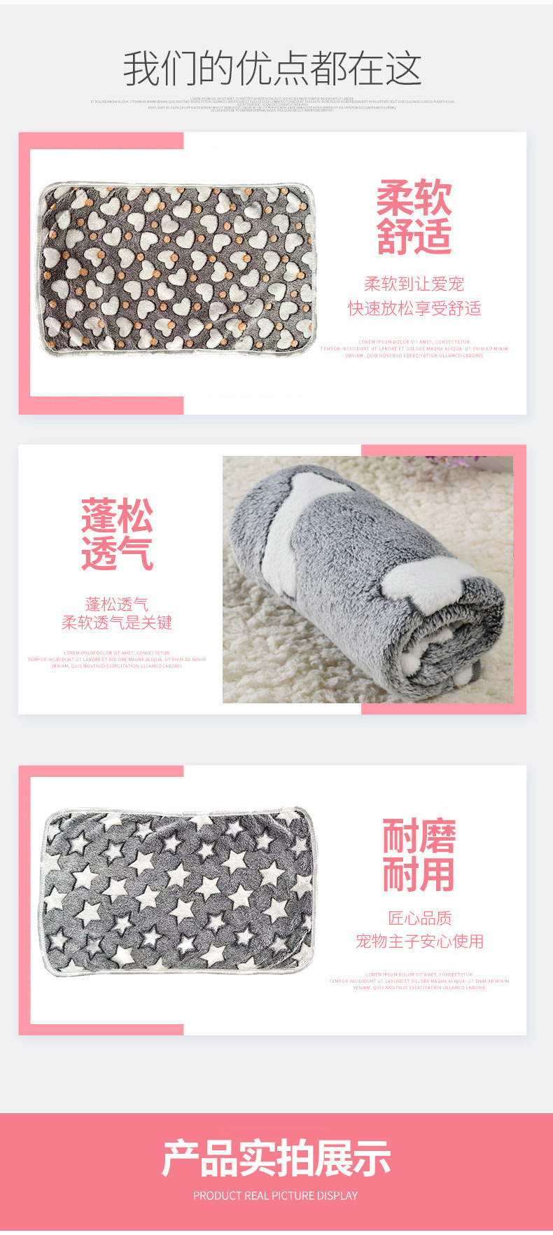 【材质】:珊瑚绒(面料是不会掉毛的)