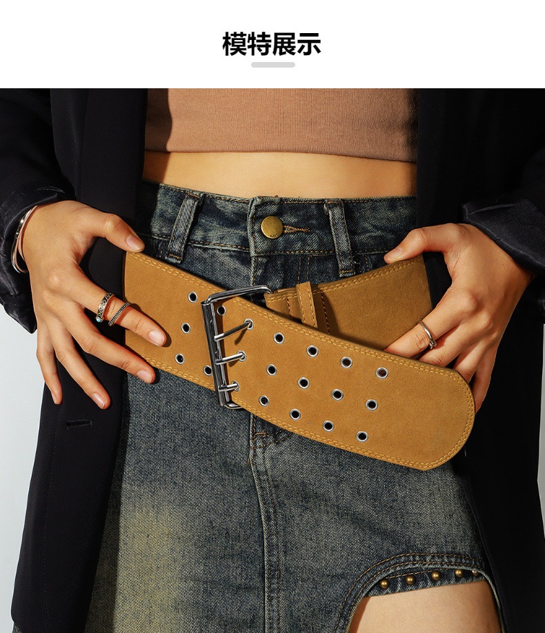 유럽과 미국의 국경 벨트 에어 홀 3 브레스트 카키 스웨이드 허리 씰 장식 코트 겨울 패션 올 매칭 펑크