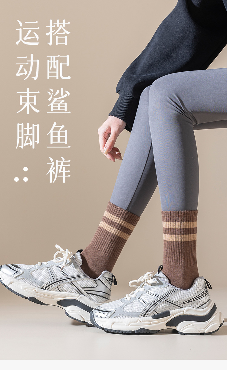 양말이 달린 상어 바지 여성용 중간 종아리 길이 양말 가을과 겨울면 양말 인기있는 넷 레드 스포츠 겉옷 흰색 스타킹