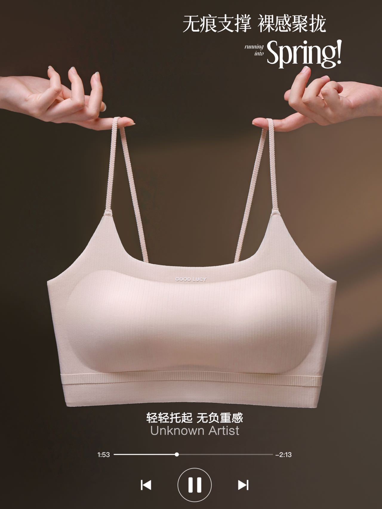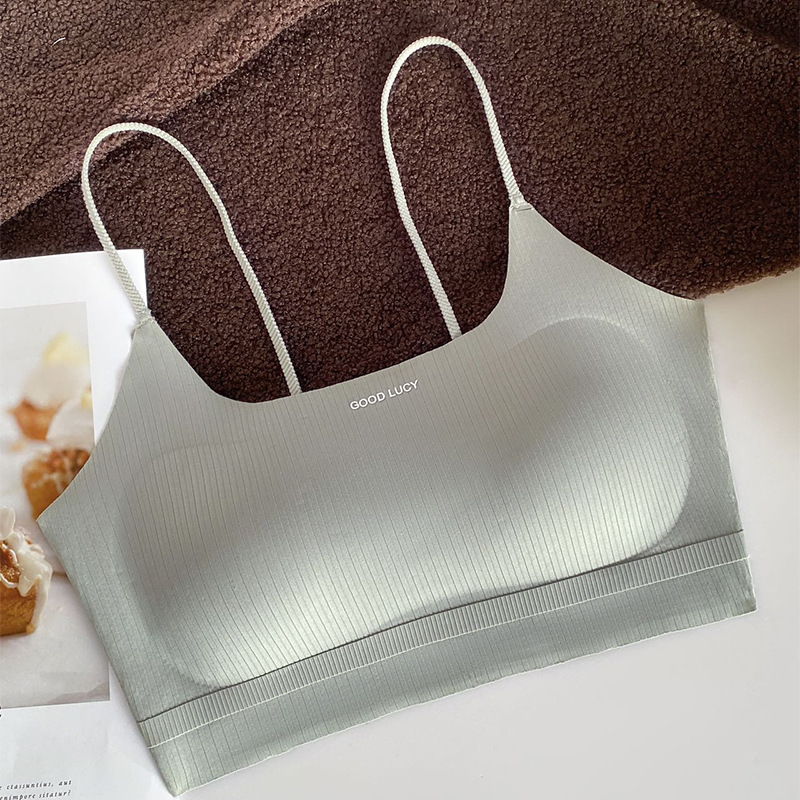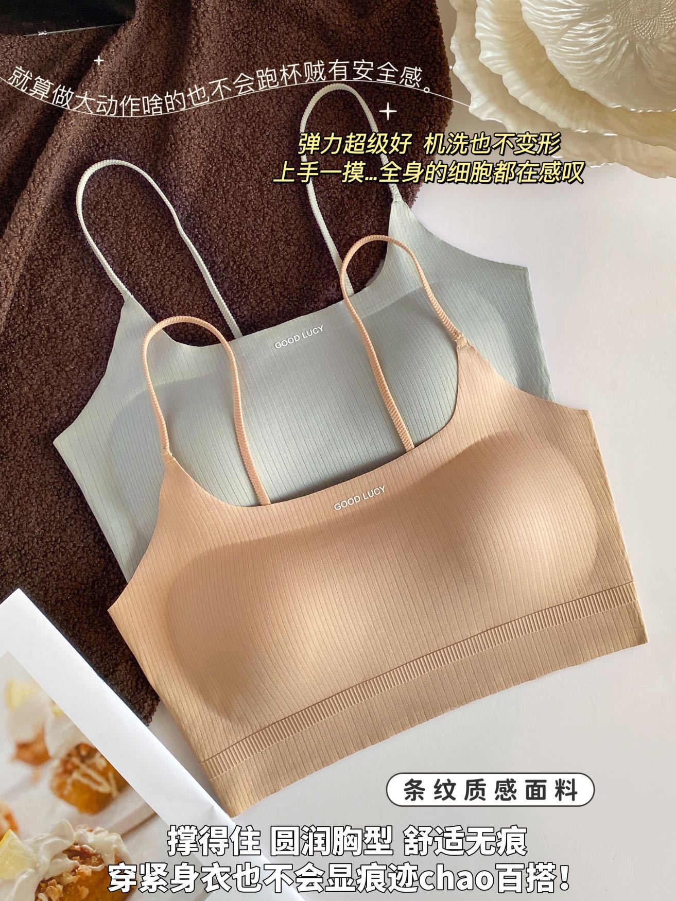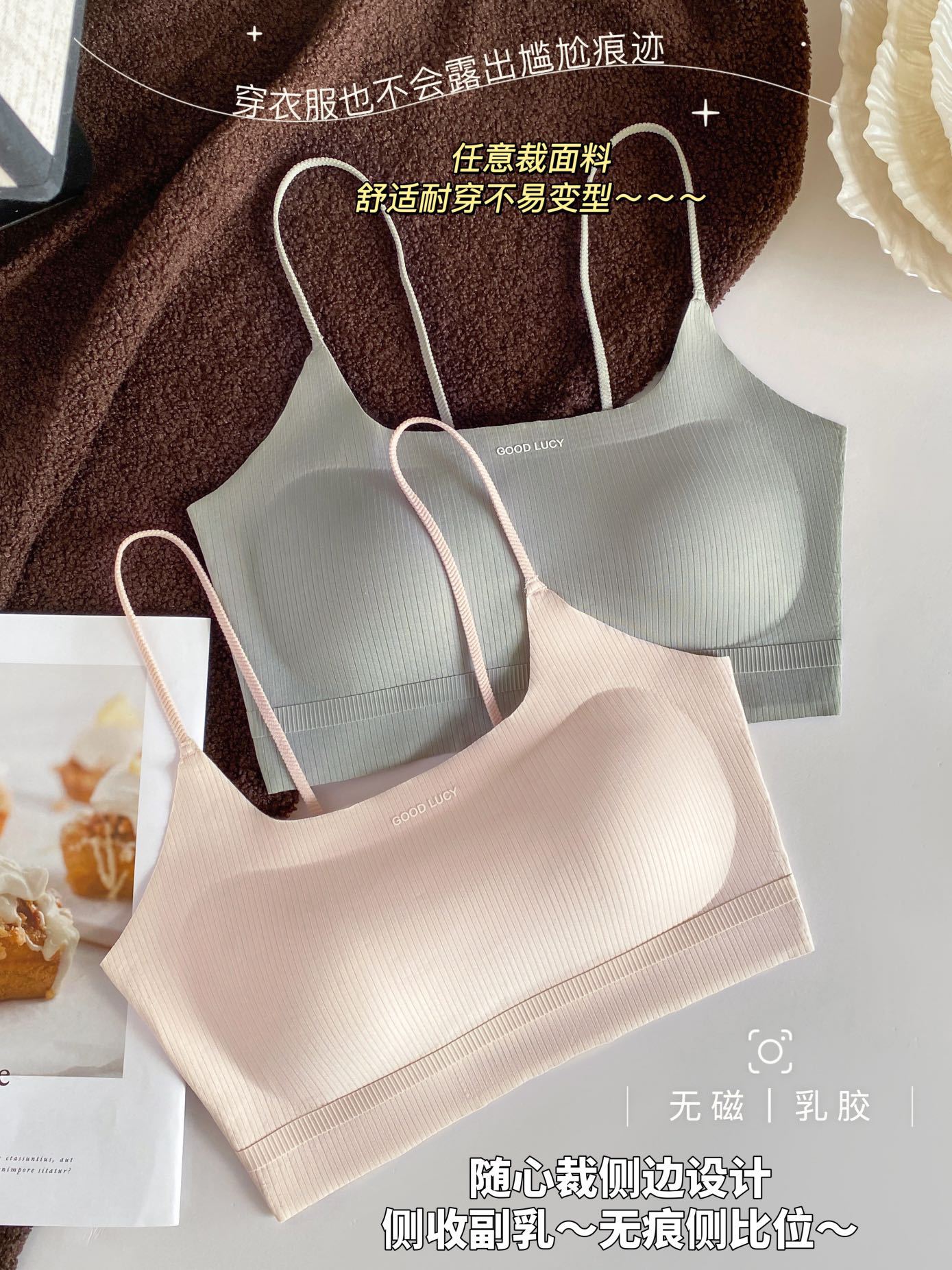 보이지 않는 라텍스 조끼형 무봉제 속옷, 작은 가슴용 얇은 스파게티 스트랩 브라, 학생용 스포츠 브라, 등이 아름다운 브라스토어 가기