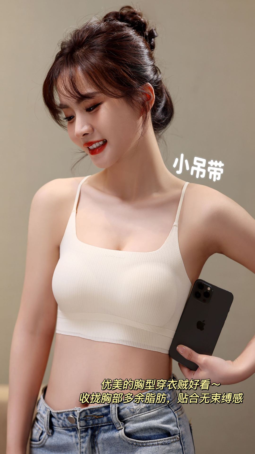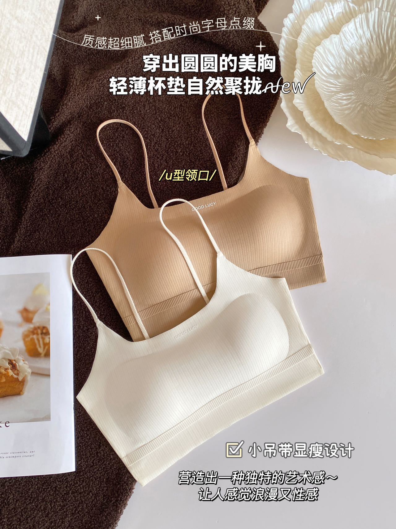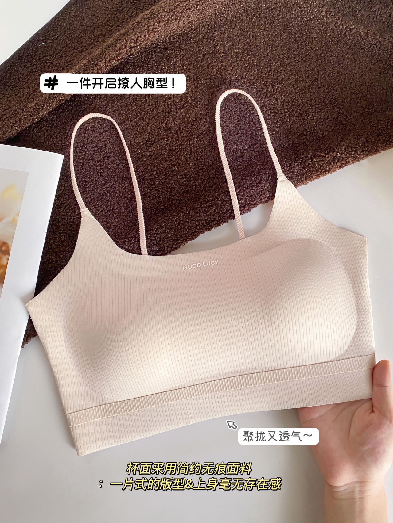 보이지 않는 라텍스 조끼형 무봉제 속옷, 작은 가슴용 얇은 스파게티 스트랩 브라, 학생용 스포츠 브라, 등이 아름다운 브라스토어 가기