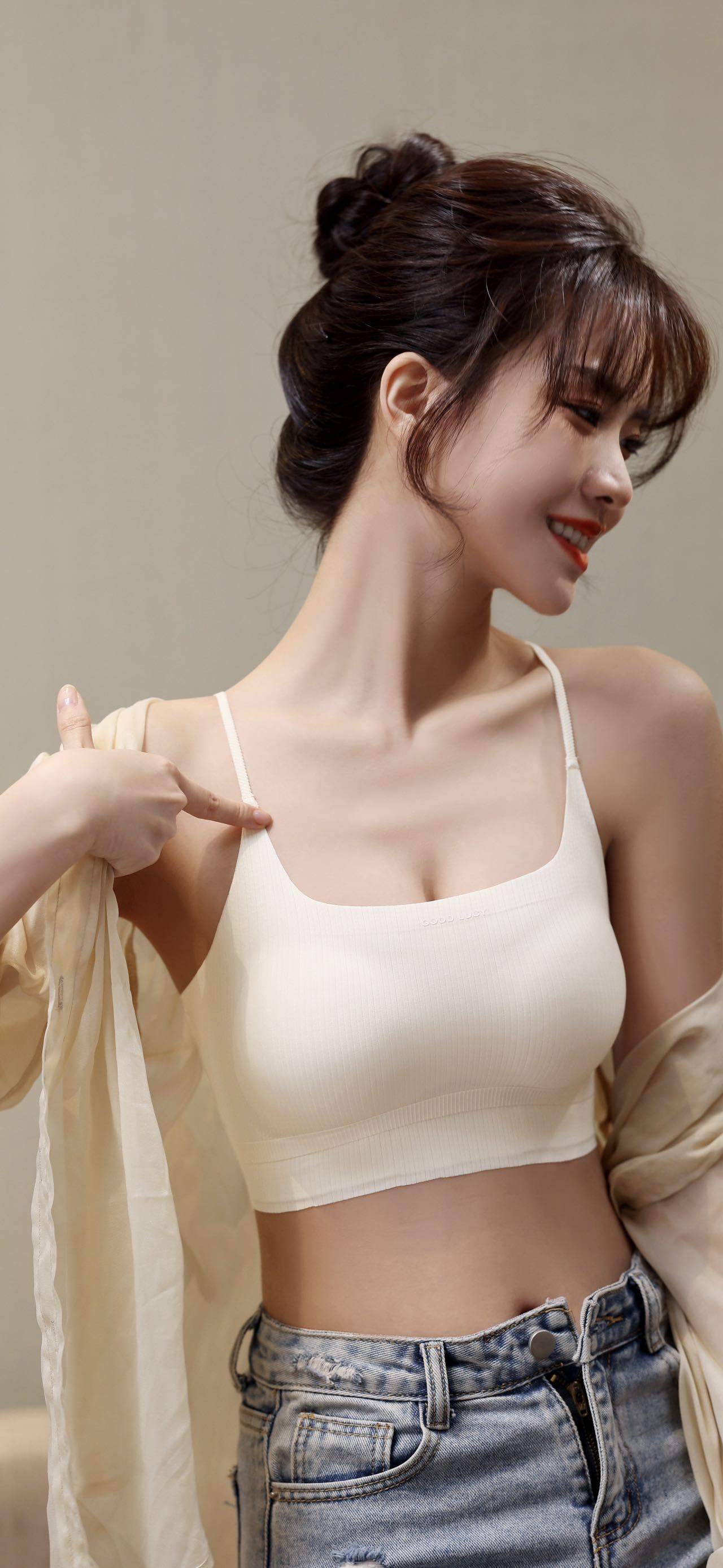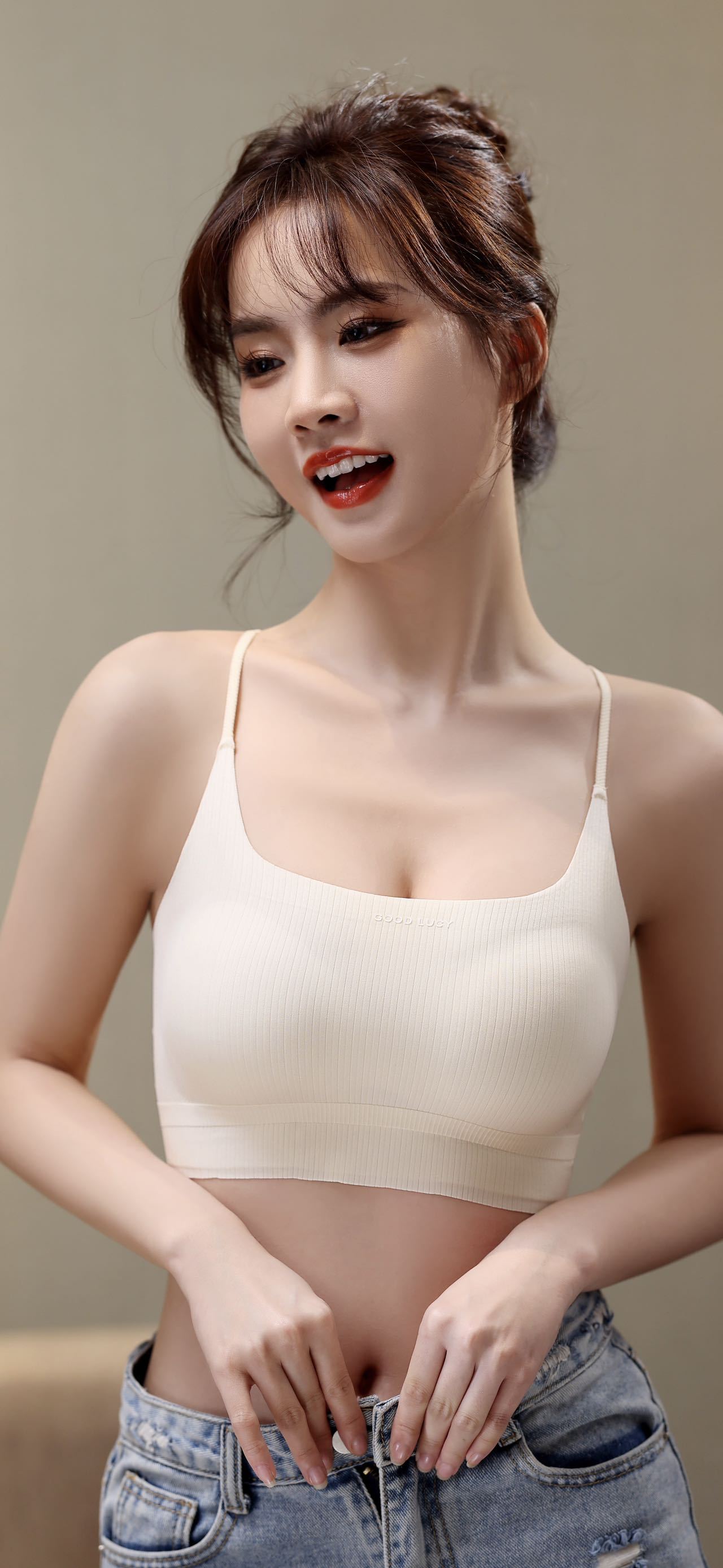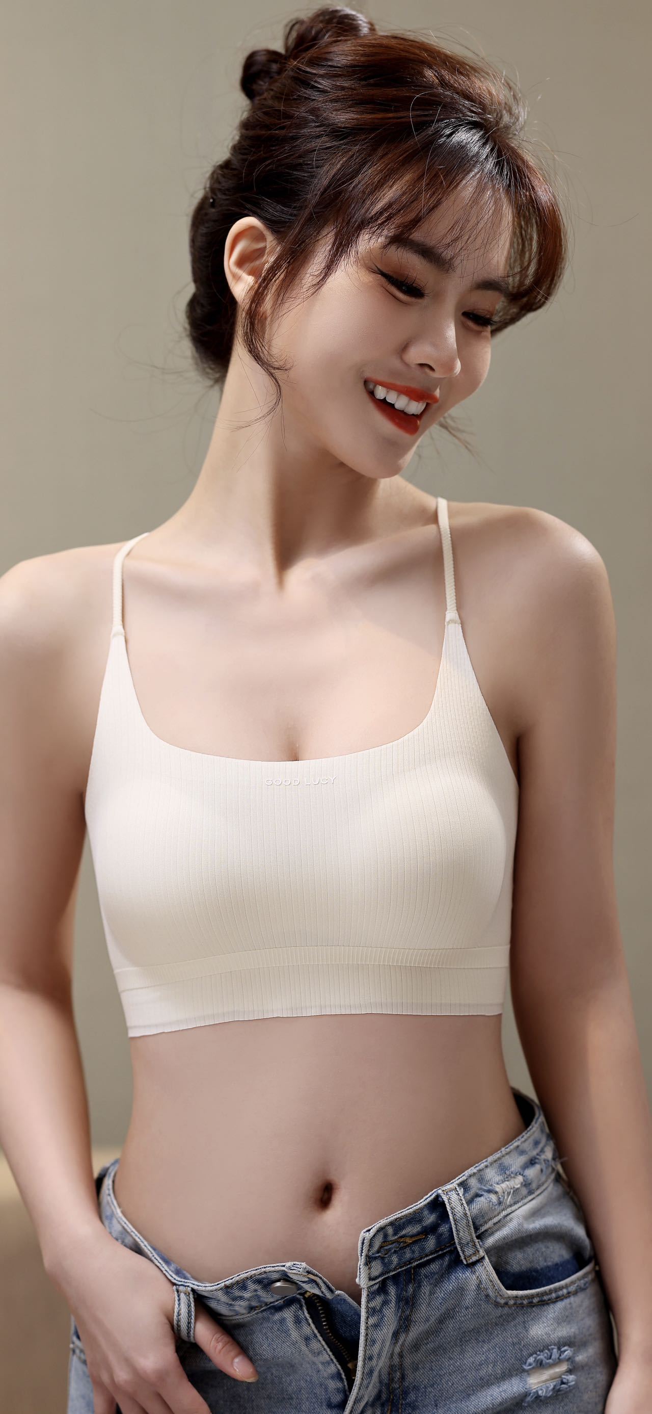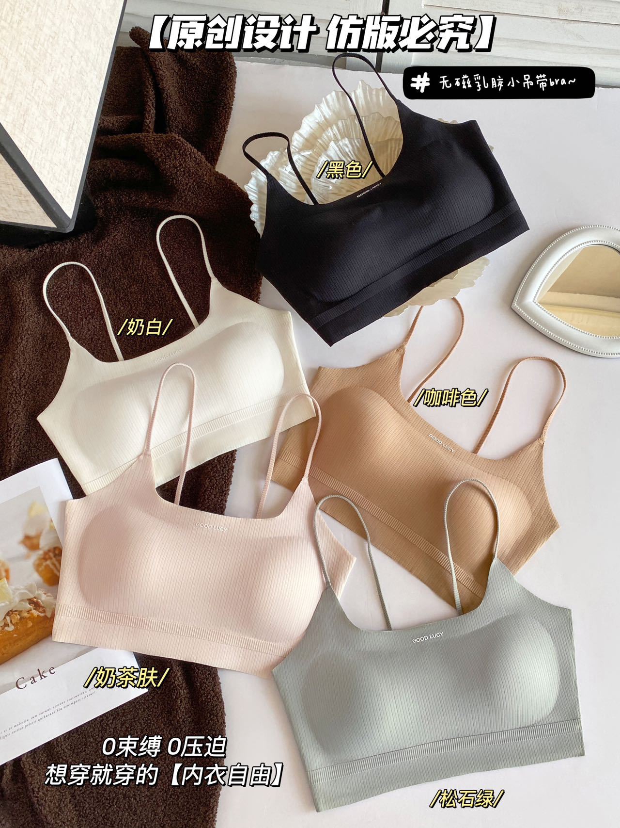 보이지 않는 라텍스 조끼형 무봉제 속옷, 작은 가슴용 얇은 스파게티 스트랩 브라, 학생용 스포츠 브라, 등이 아름다운 브라스토어 가기