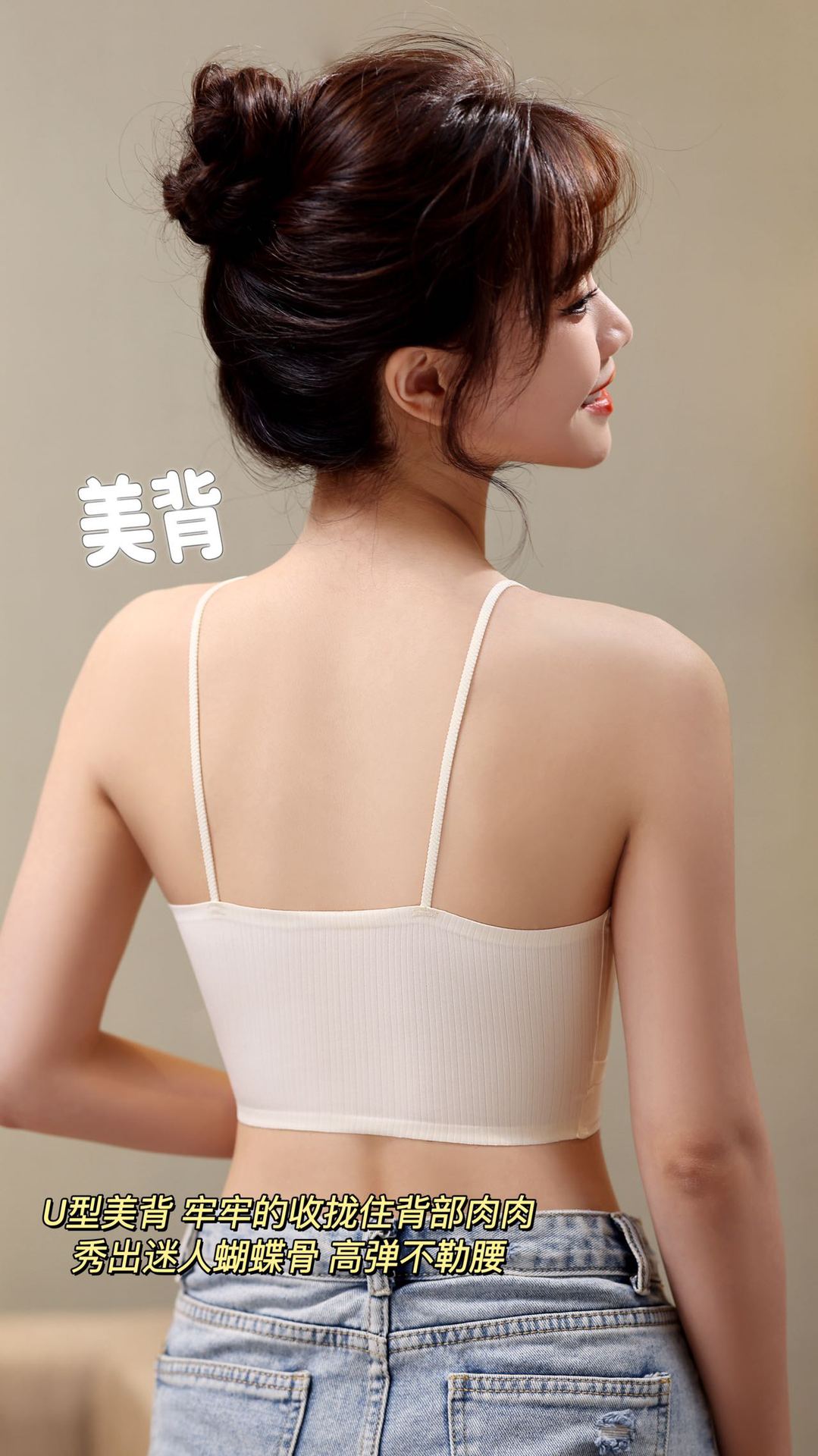 보이지 않는 라텍스 조끼형 무봉제 속옷, 작은 가슴용 얇은 스파게티 스트랩 브라, 학생용 스포츠 브라, 등이 아름다운 브라