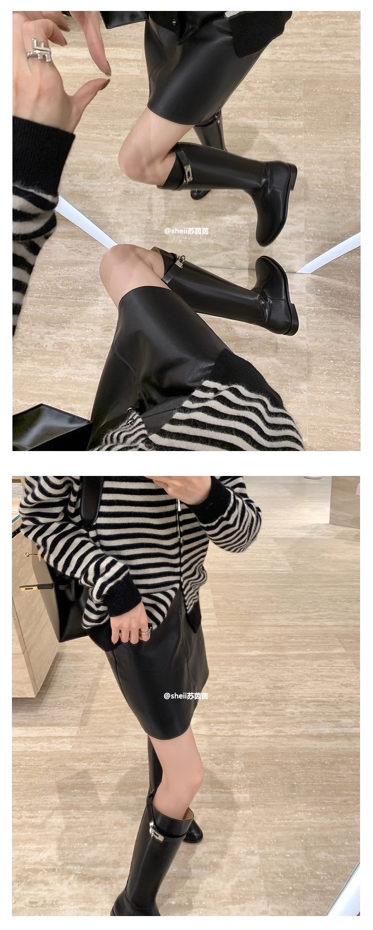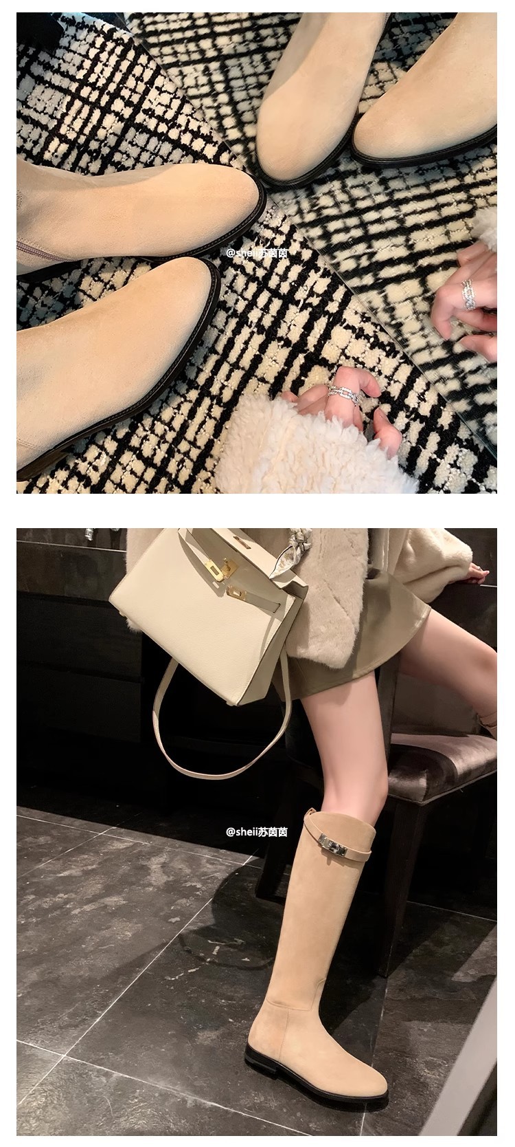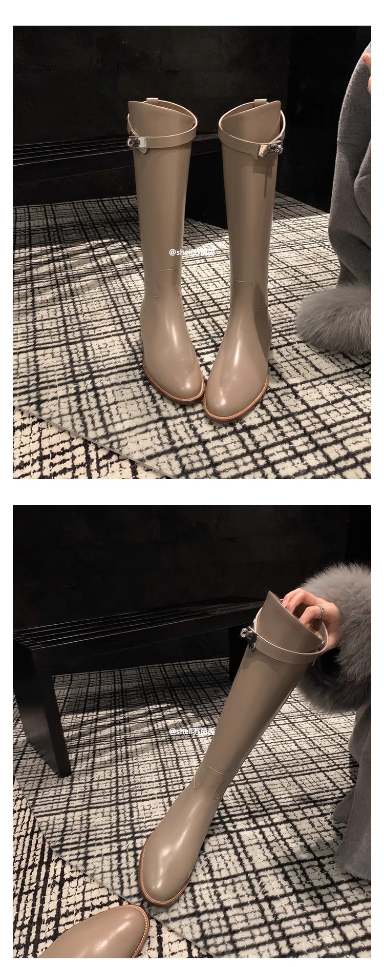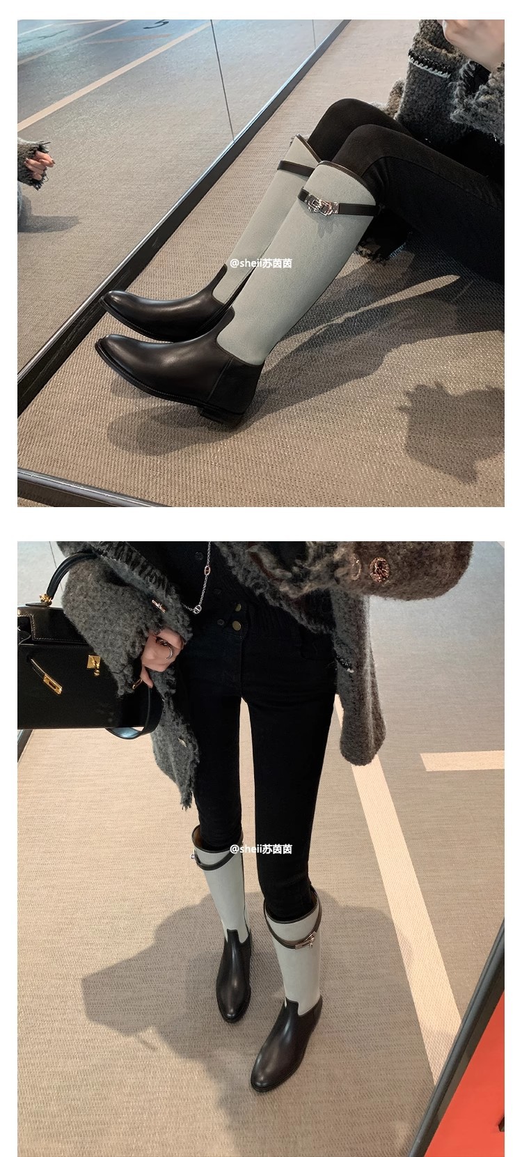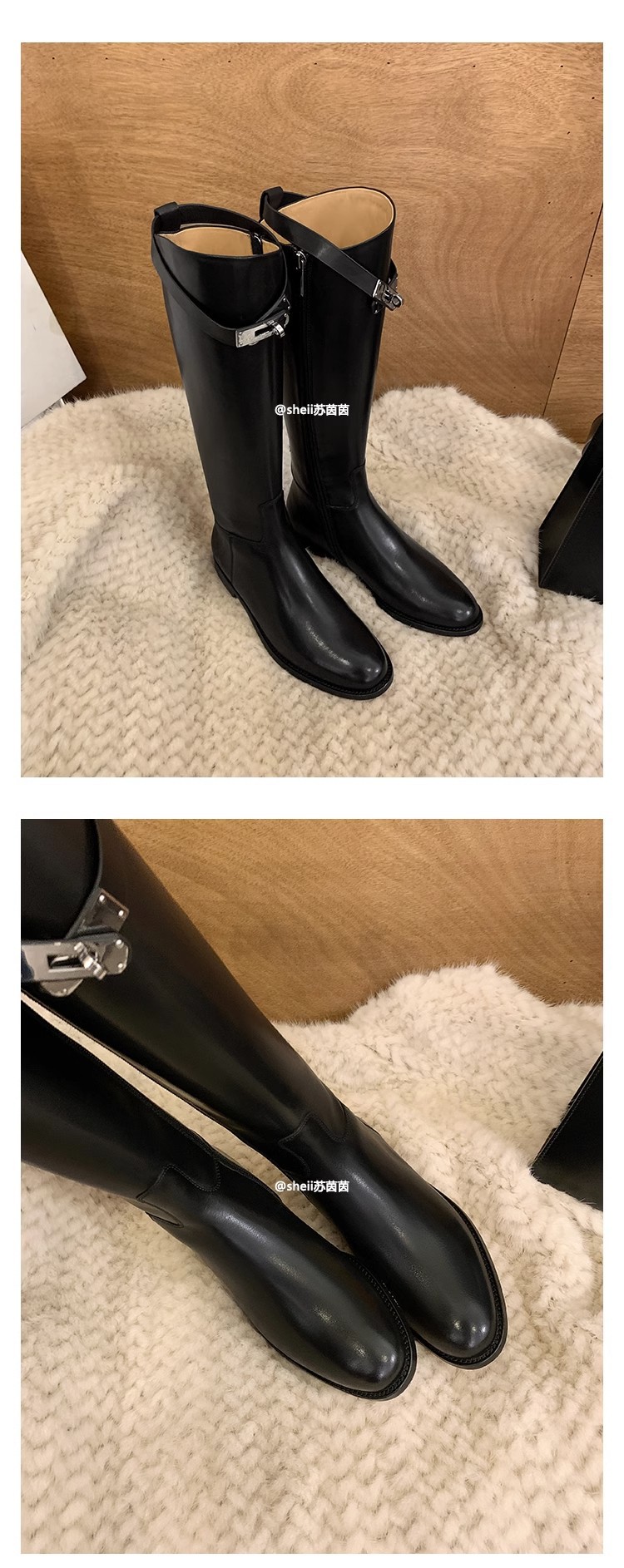 재고 즉시 배송! 봄 가을용 같은 스타일의 신발, 천연 가죽, 사선형 K* 잠금장치, 측면 지퍼, 두꺼운 굽, 여성용 롱부츠스토어 가기