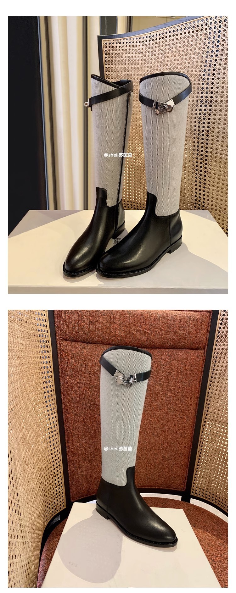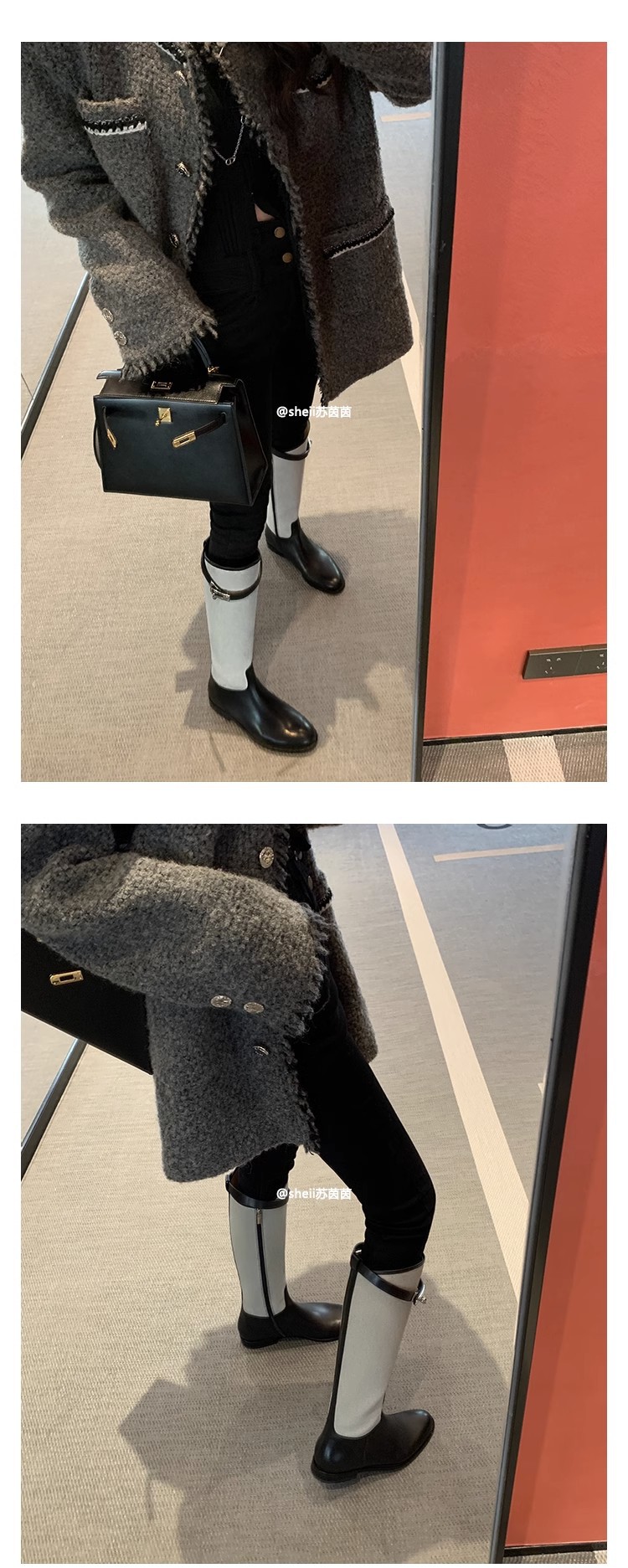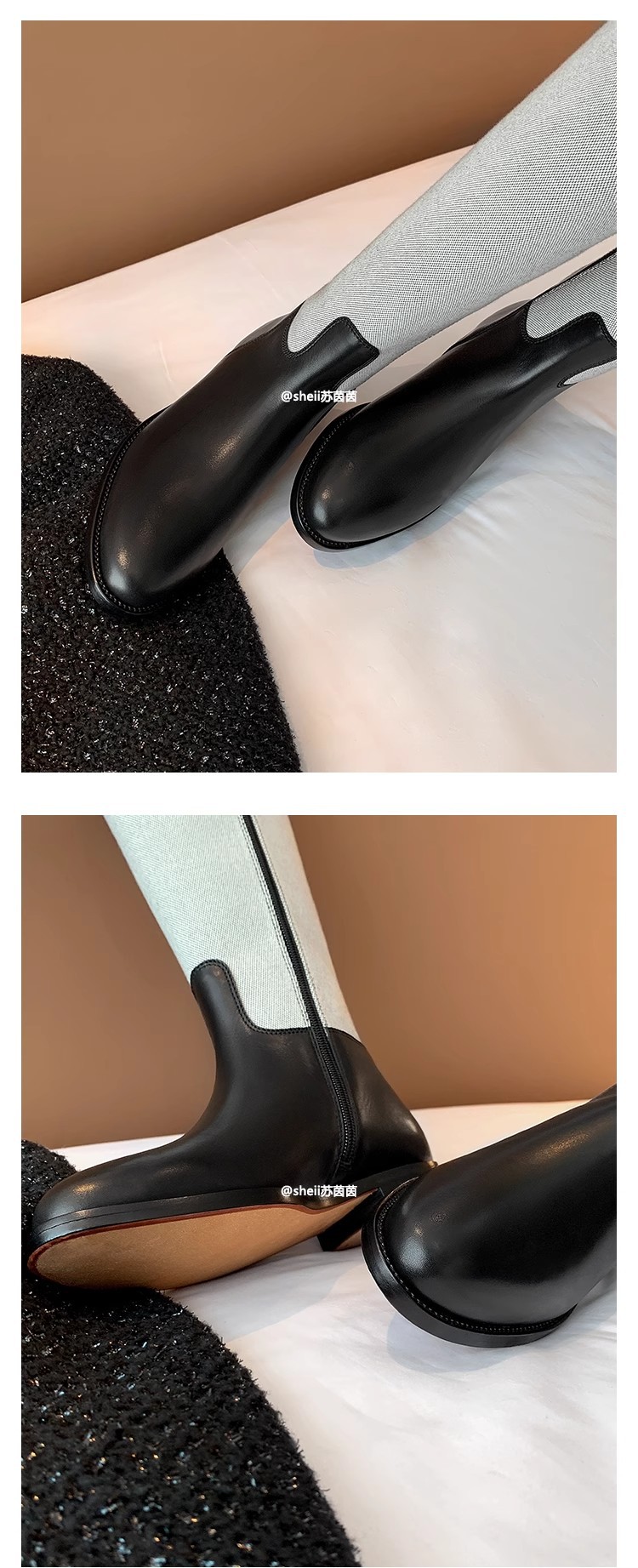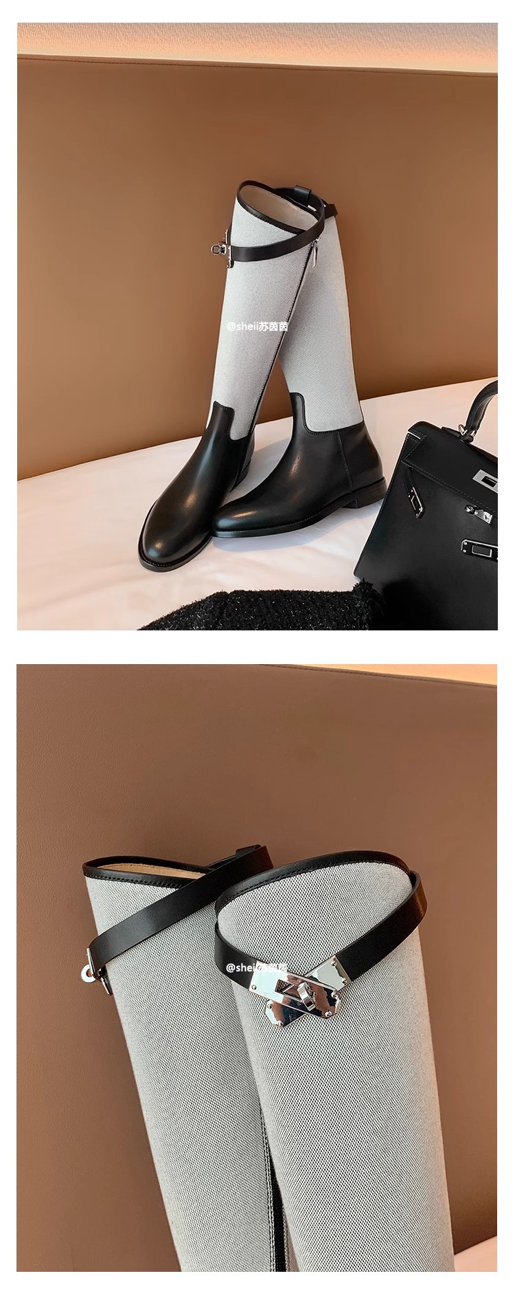 재고 즉시 배송! 봄 가을용 같은 스타일의 신발, 천연 가죽, 사선형 K* 잠금장치, 측면 지퍼, 두꺼운 굽, 여성용 롱부츠스토어 가기