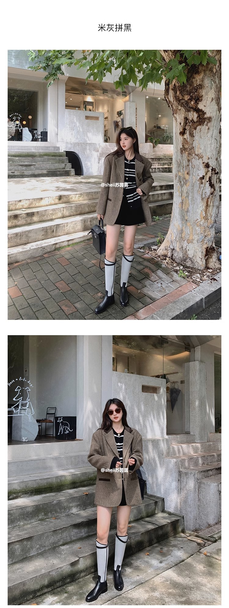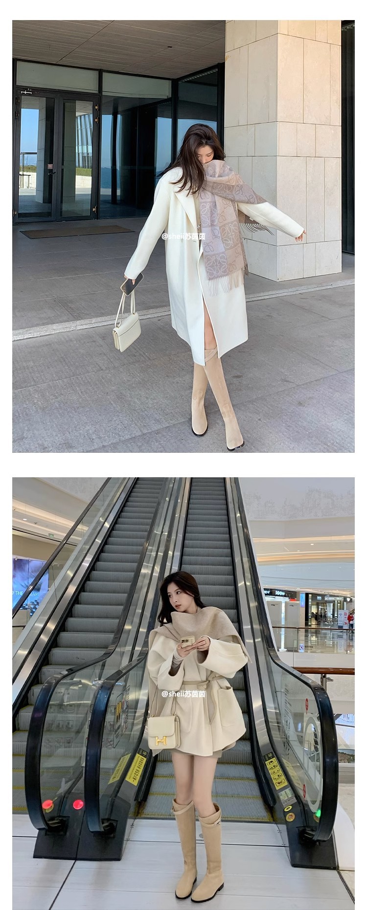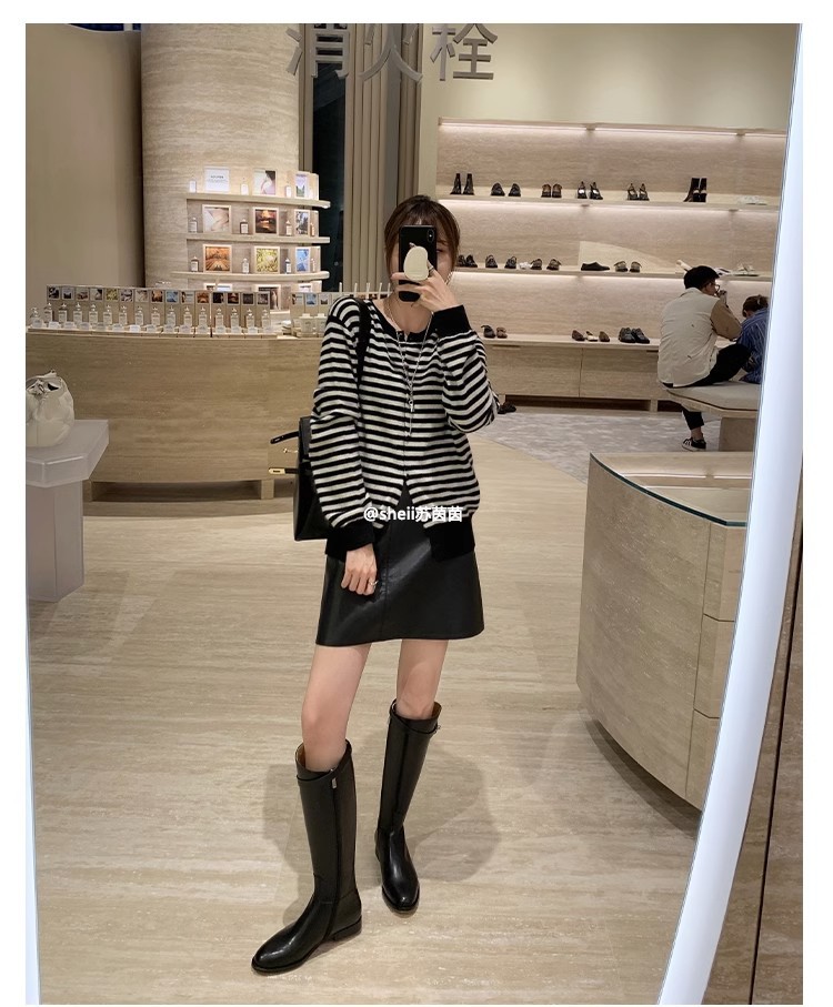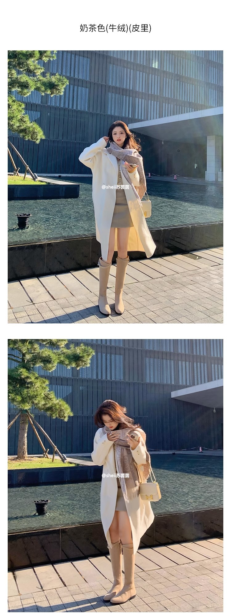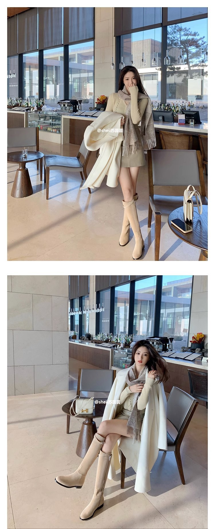 재고 즉시 배송! 봄 가을용 같은 스타일의 신발, 천연 가죽, 사선형 K* 잠금장치, 측면 지퍼, 두꺼운 굽, 여성용 롱부츠스토어 가기
