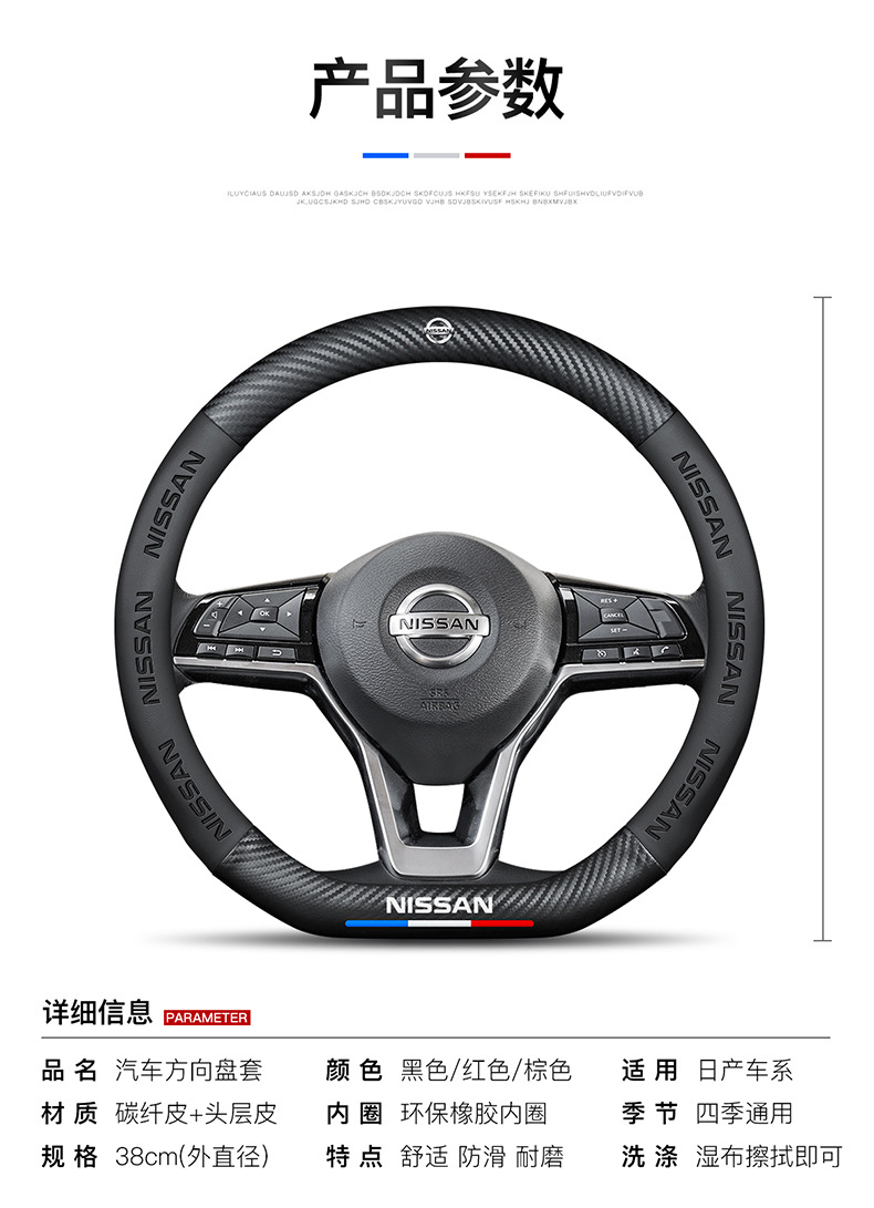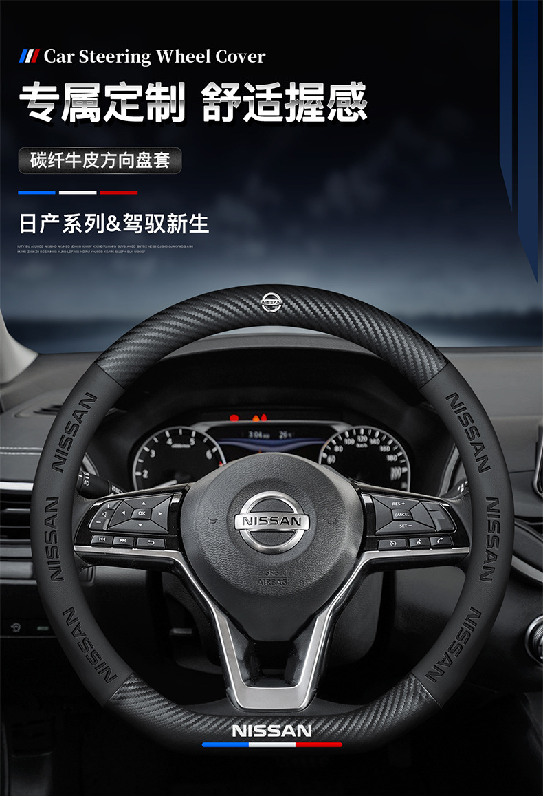 18/20 닛산 새로운 Tida TERRA 스티어링 휠 커버 정품 가죽 미끄럼 방지 땀 흡수 초박형 손 재봉없는 핸들 커버에 적합스토어 가기