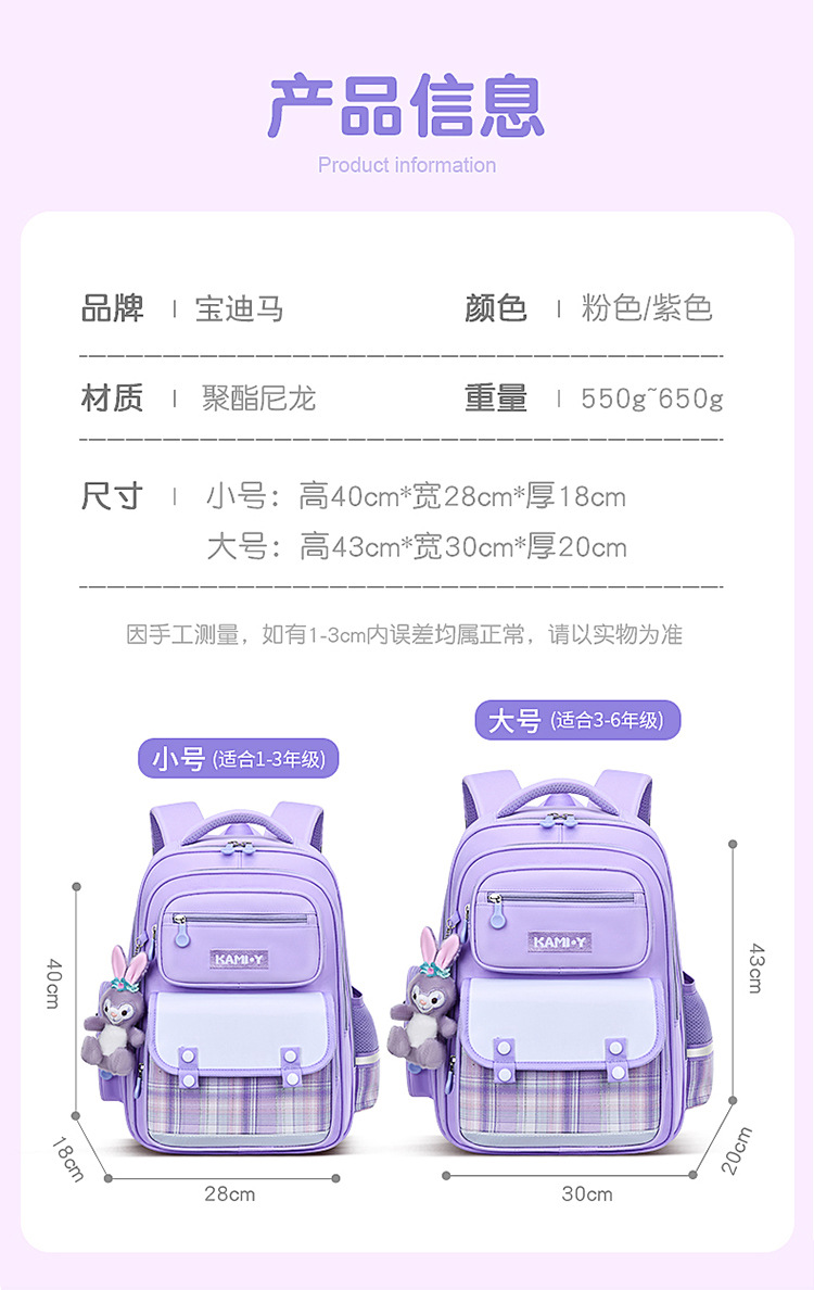 바오디마 책가방 초등학생 여학생 1~6학년 2026년 신형 여아용 경량 어린이 척추보호 및 부담경감 가방