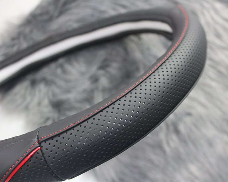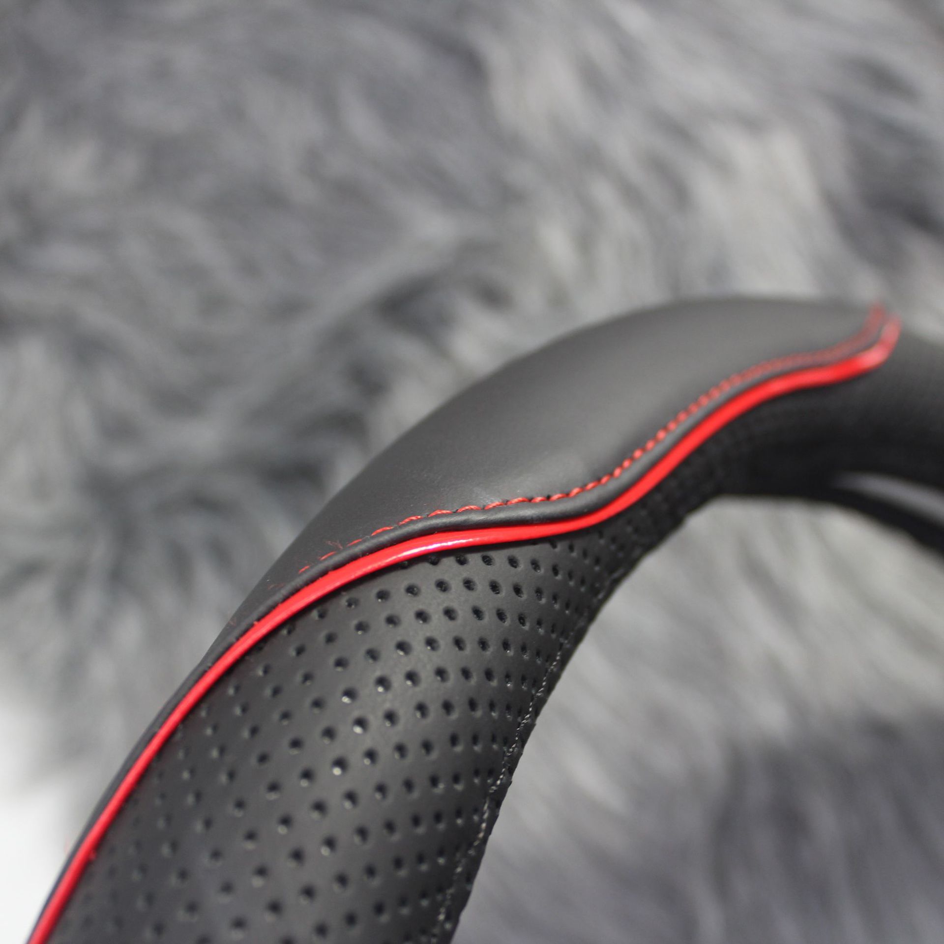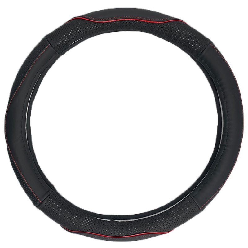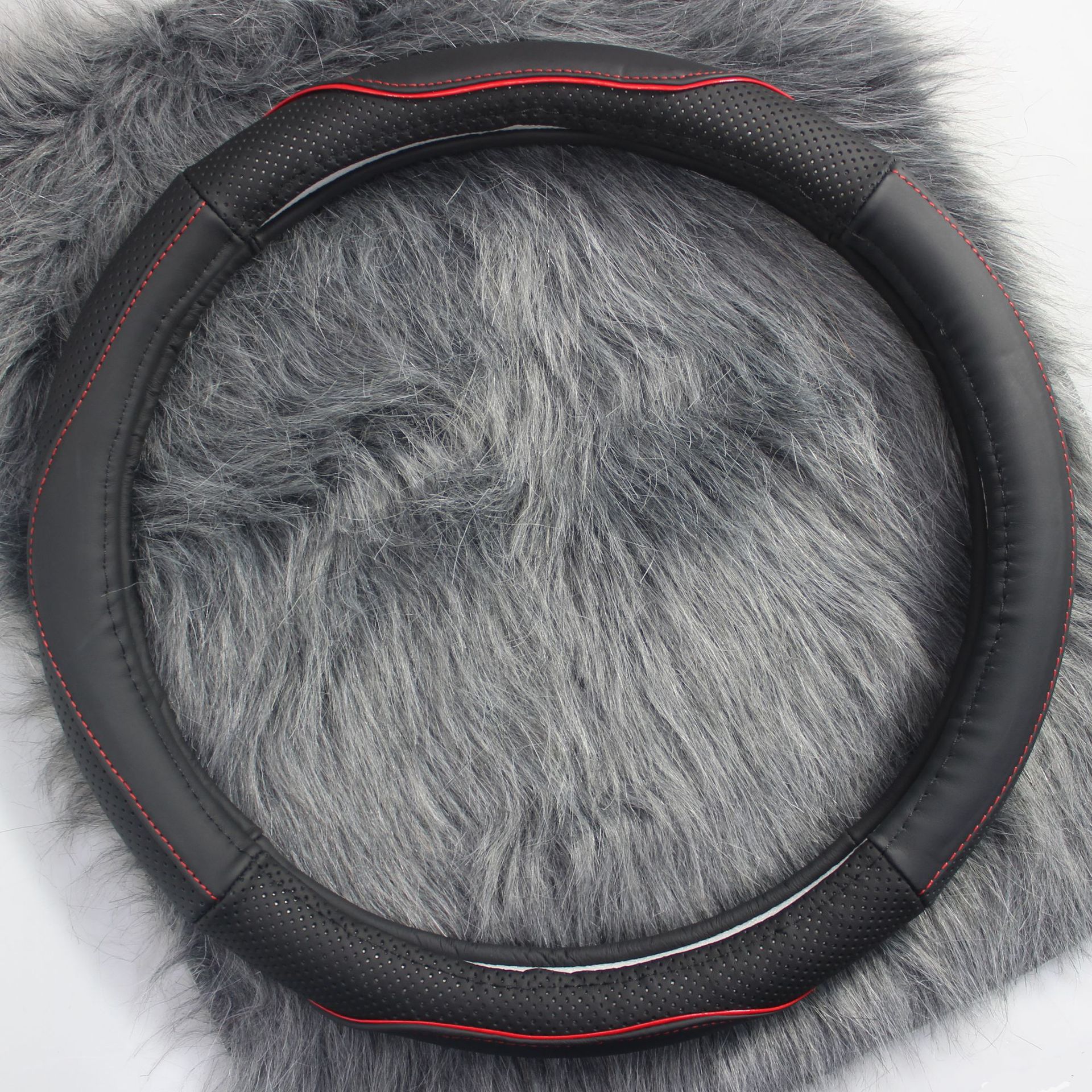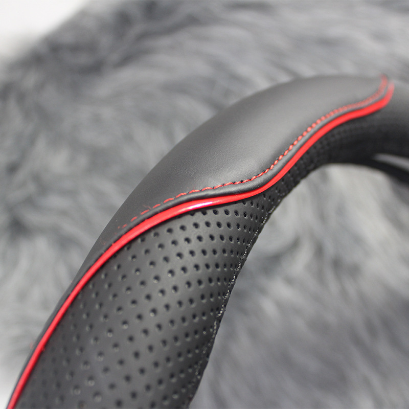 홈 MDCG 레드 림 블랙 레드 라인 소 가죽 포시즌 유니버설 미끄럼 방지 스티어링 휠 커버 도매스토어 가기