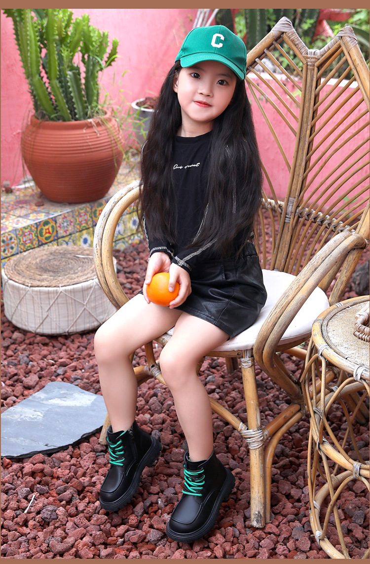 걸스 가죽 블랙 마틴 부츠 캣워크 부츠 퍼포먼스 어린이 영국 하이 부츠 중대형 어린이 소녀 공주 부츠스토어 가기