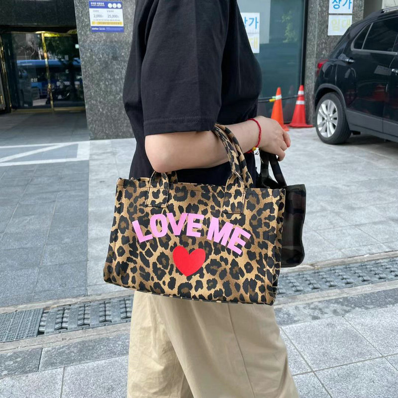 재고 한국 같은 le-junev 핸드백 레오파드 무늬 카모 토트 백 여성 캐주얼 어깨 크로스 바디 백