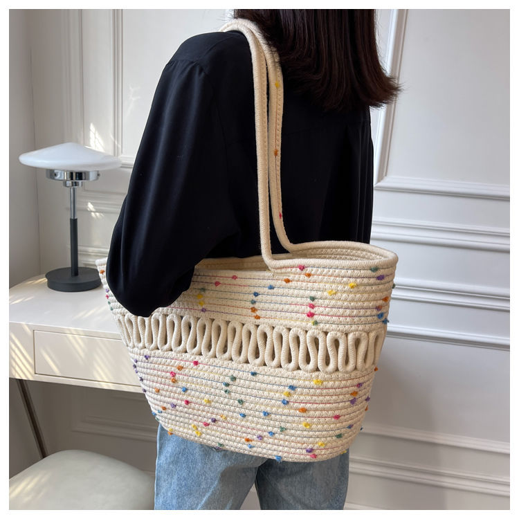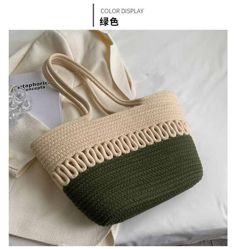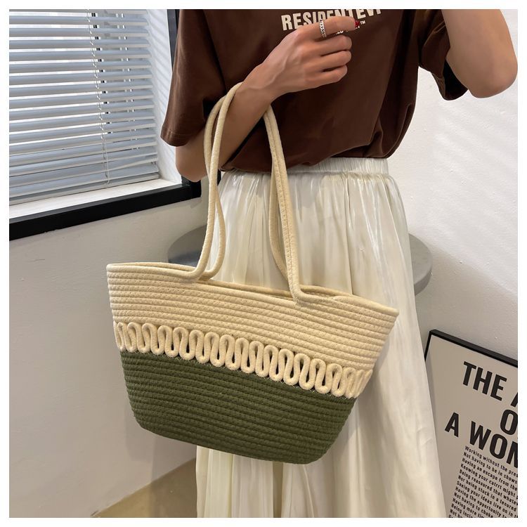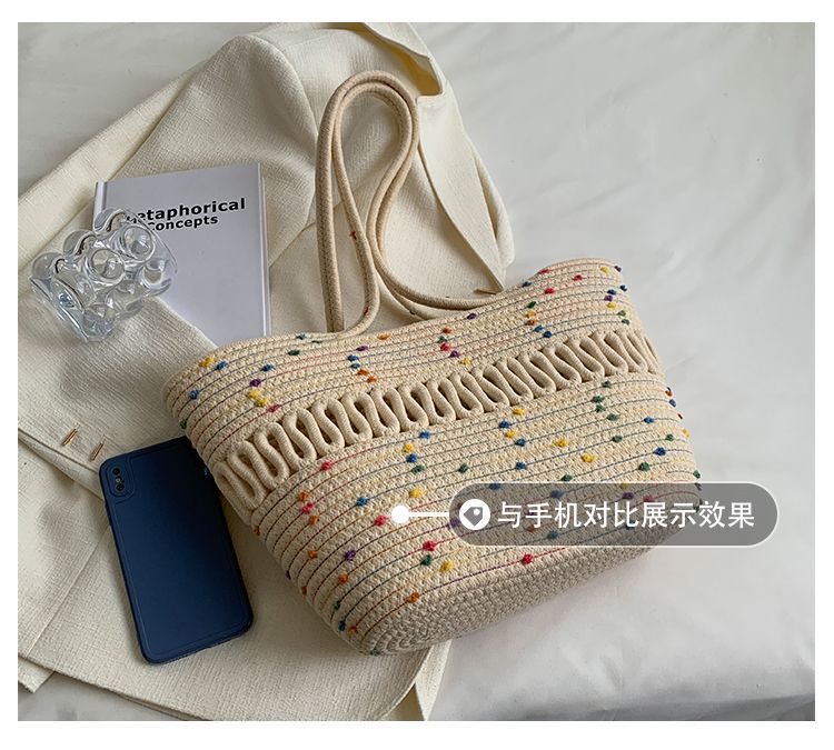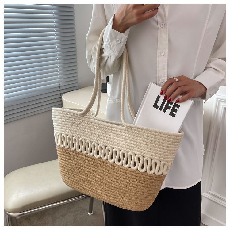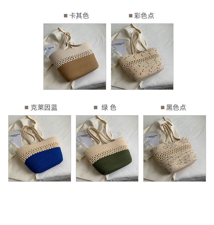 단일 어깨 가방 중공 면화 짠 가방 새로운 여름 대용량 프랑스 밀짚 가방 해변 휴가 해변 가방 여성