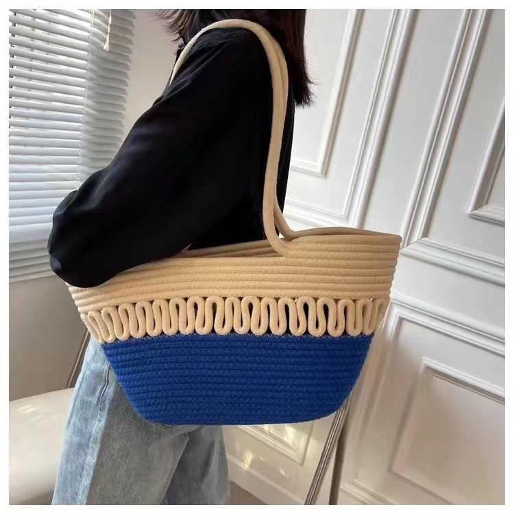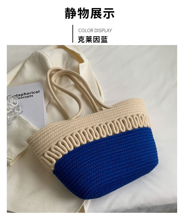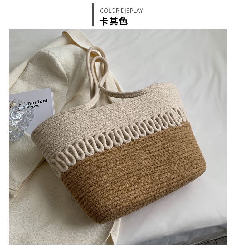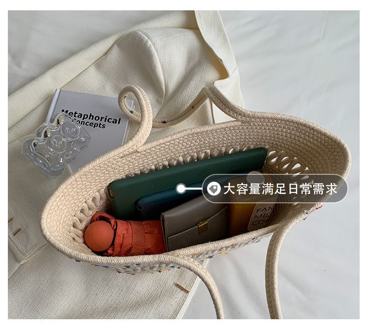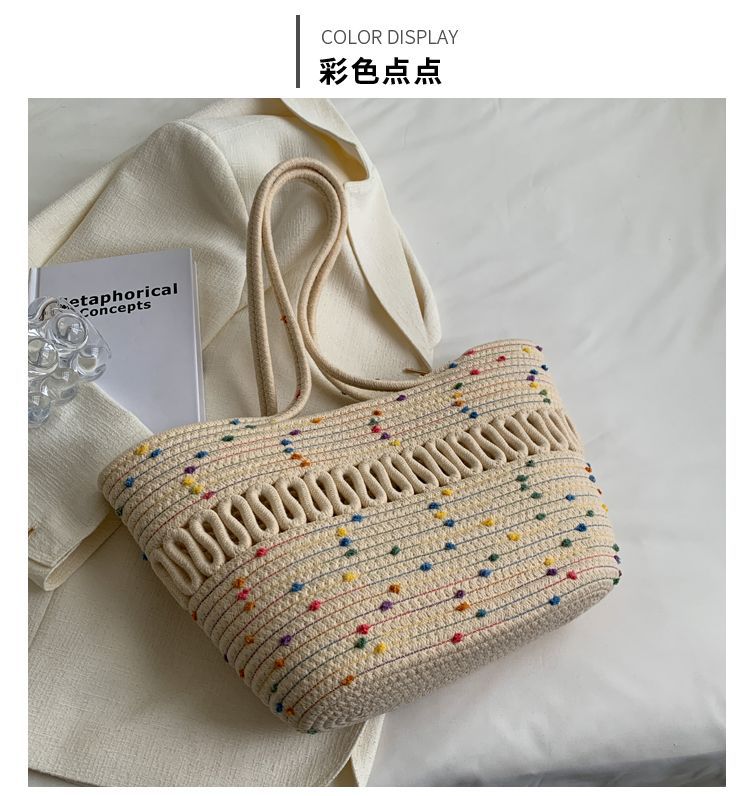 단일 어깨 가방 중공 면화 짠 가방 새로운 여름 대용량 프랑스 밀짚 가방 해변 휴가 해변 가방 여성