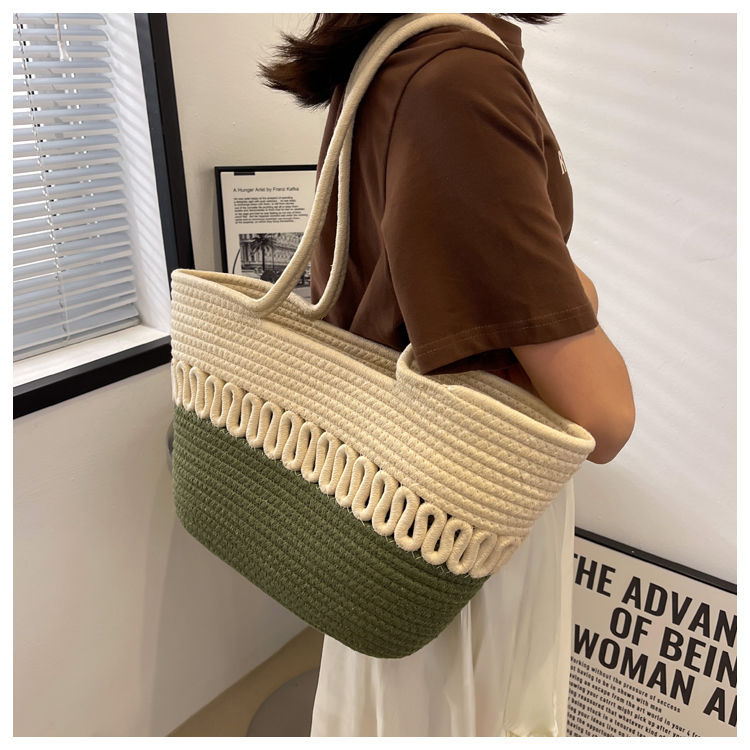 단일 어깨 가방 중공 면화 짠 가방 새로운 여름 대용량 프랑스 밀짚 가방 해변 휴가 해변 가방 여성스토어 가기