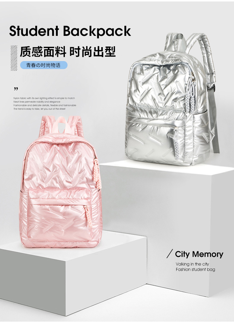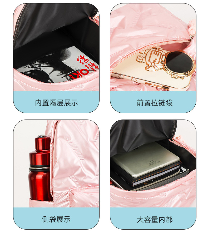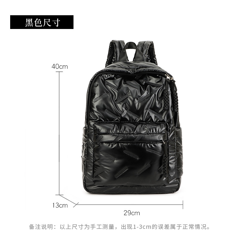 남성과 여성을위한 대용량 면화 패딩 가방 커플 새로운 배낭 패션 학생 올 매치 스쿨 백 여행 배낭
